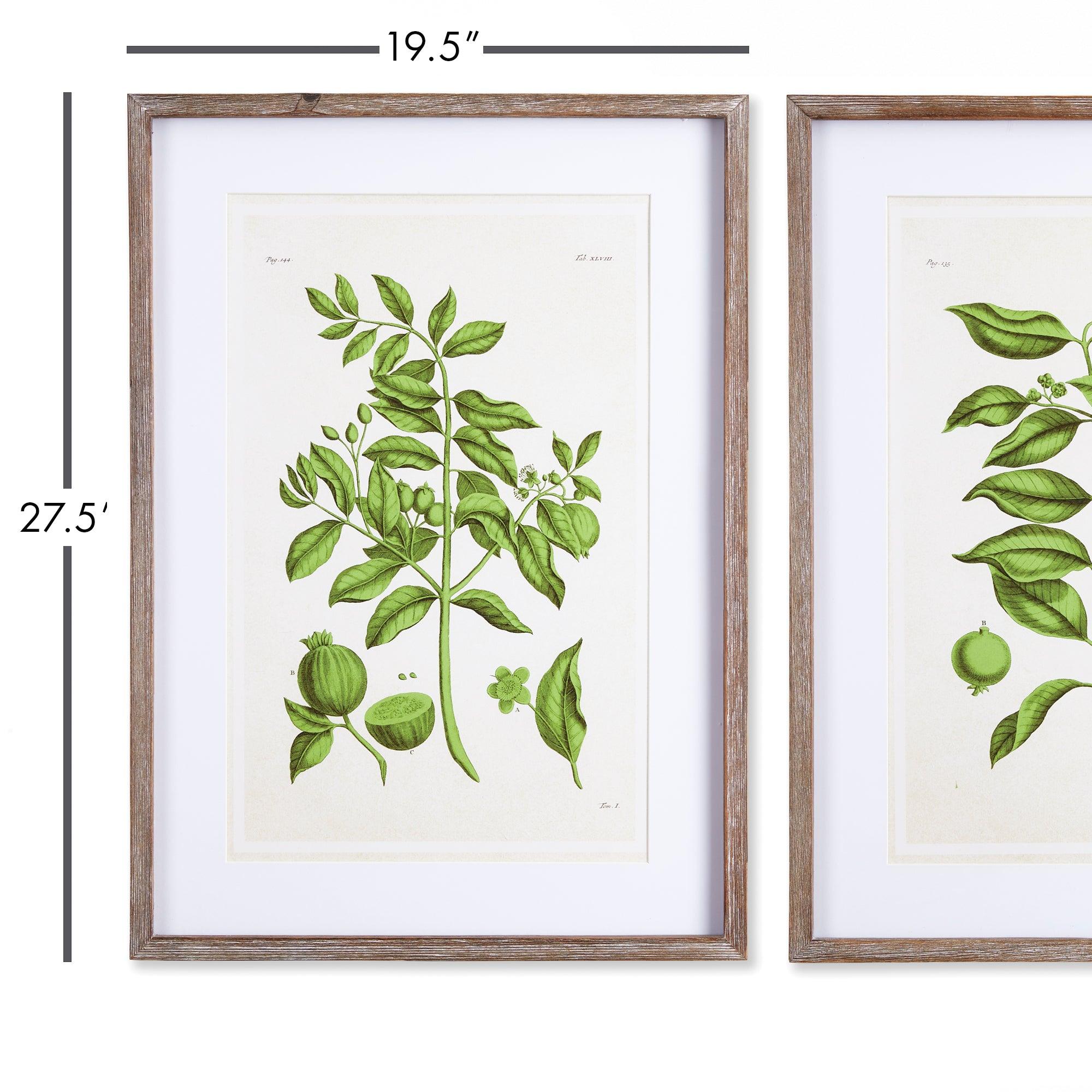 The details of a guava plant in all it's splendor are illustrated in a fresh, crisp green tone. A handsome set for home office or corridor.