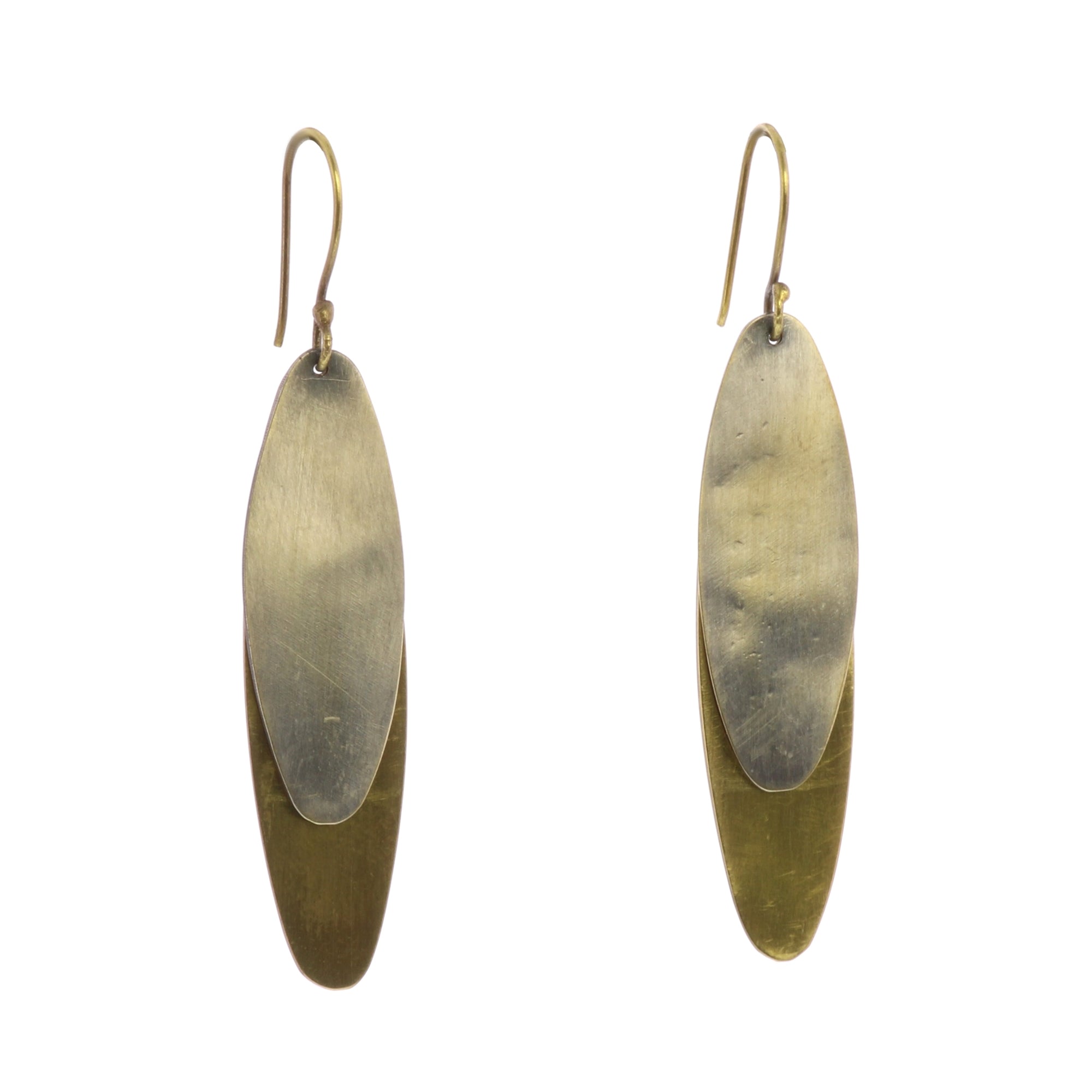 Halley Earrings - Oval, Brass & Silver - Brass & Silver