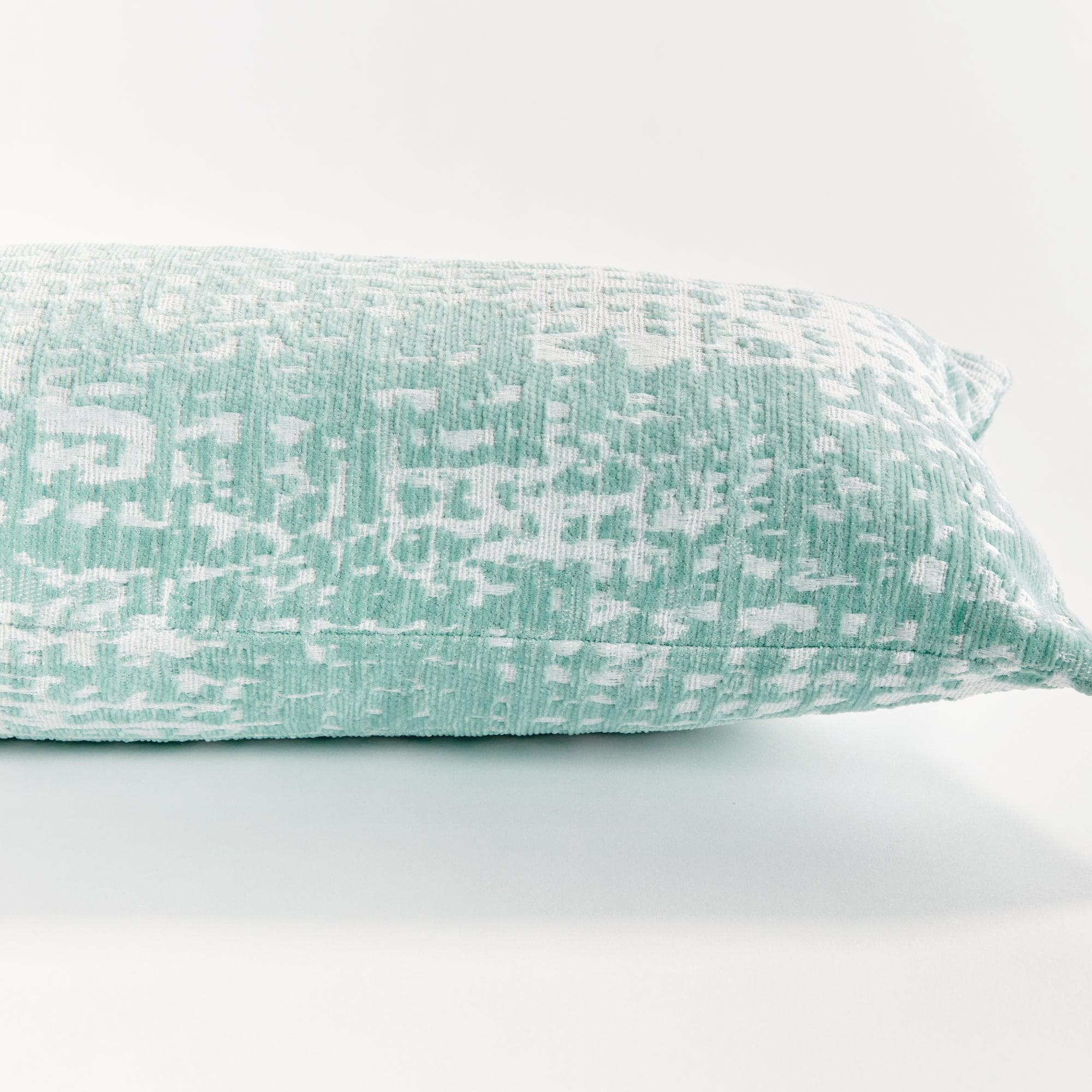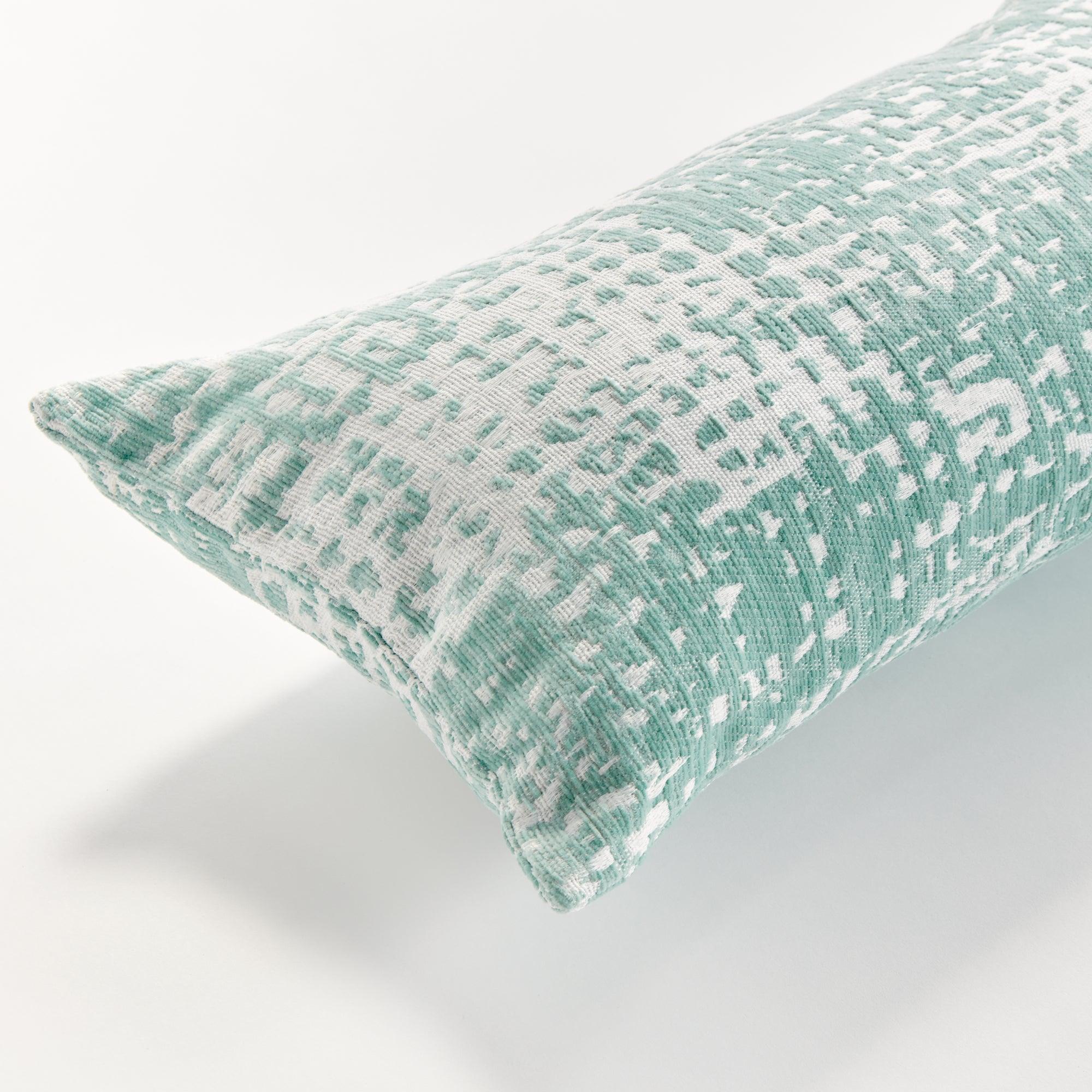 The indoor pillow that lives beautifully outdoors. Enjoy the upscale luxury and durability of Jacquard. With a woven seafoam pattern, it plays well with any palette. This pillow is weather resistant and responsibly made. Filled with 100% recycled fibers.