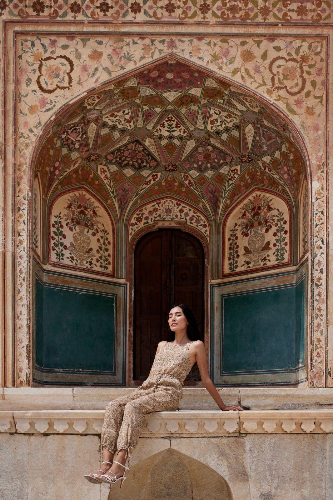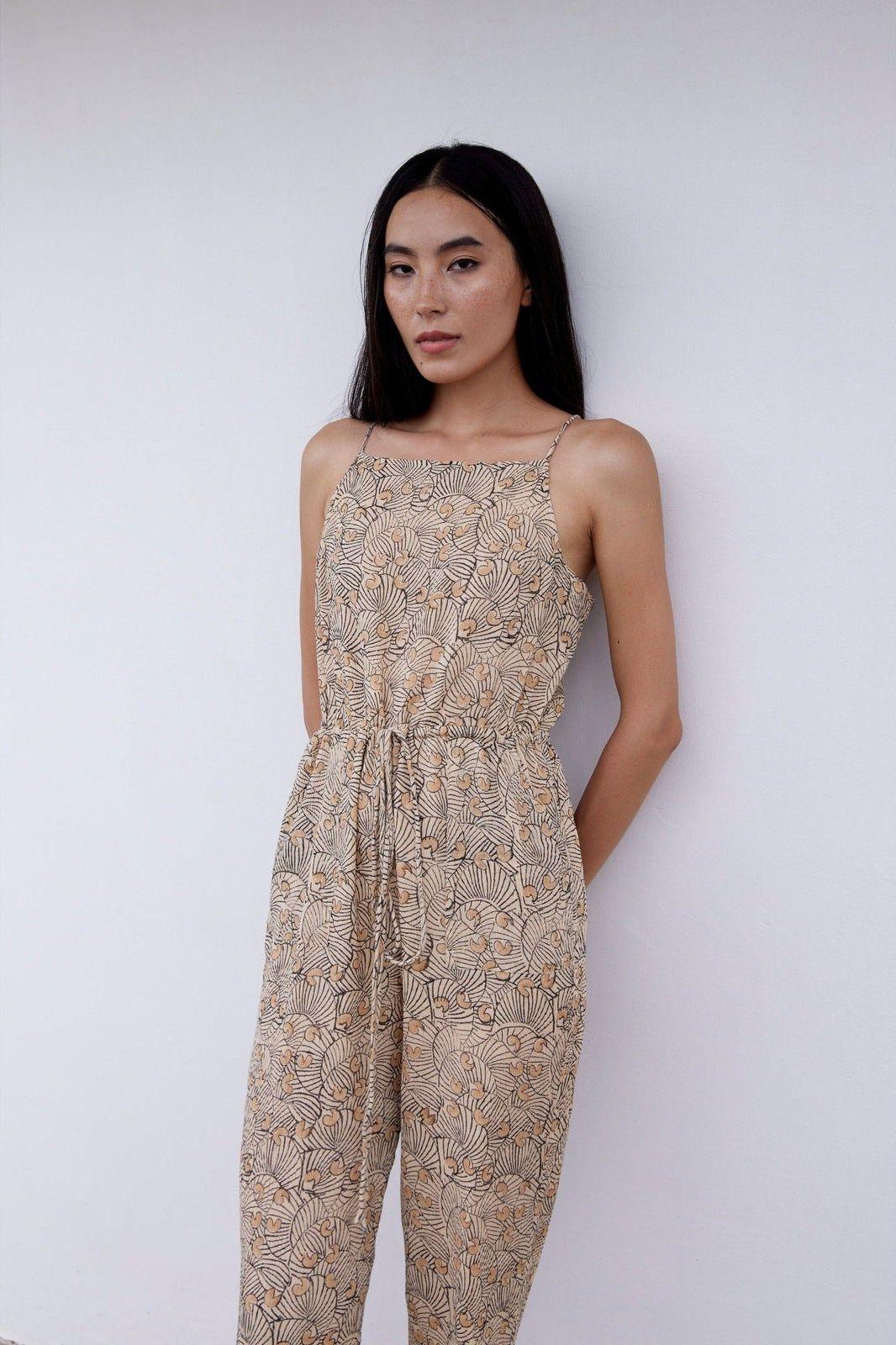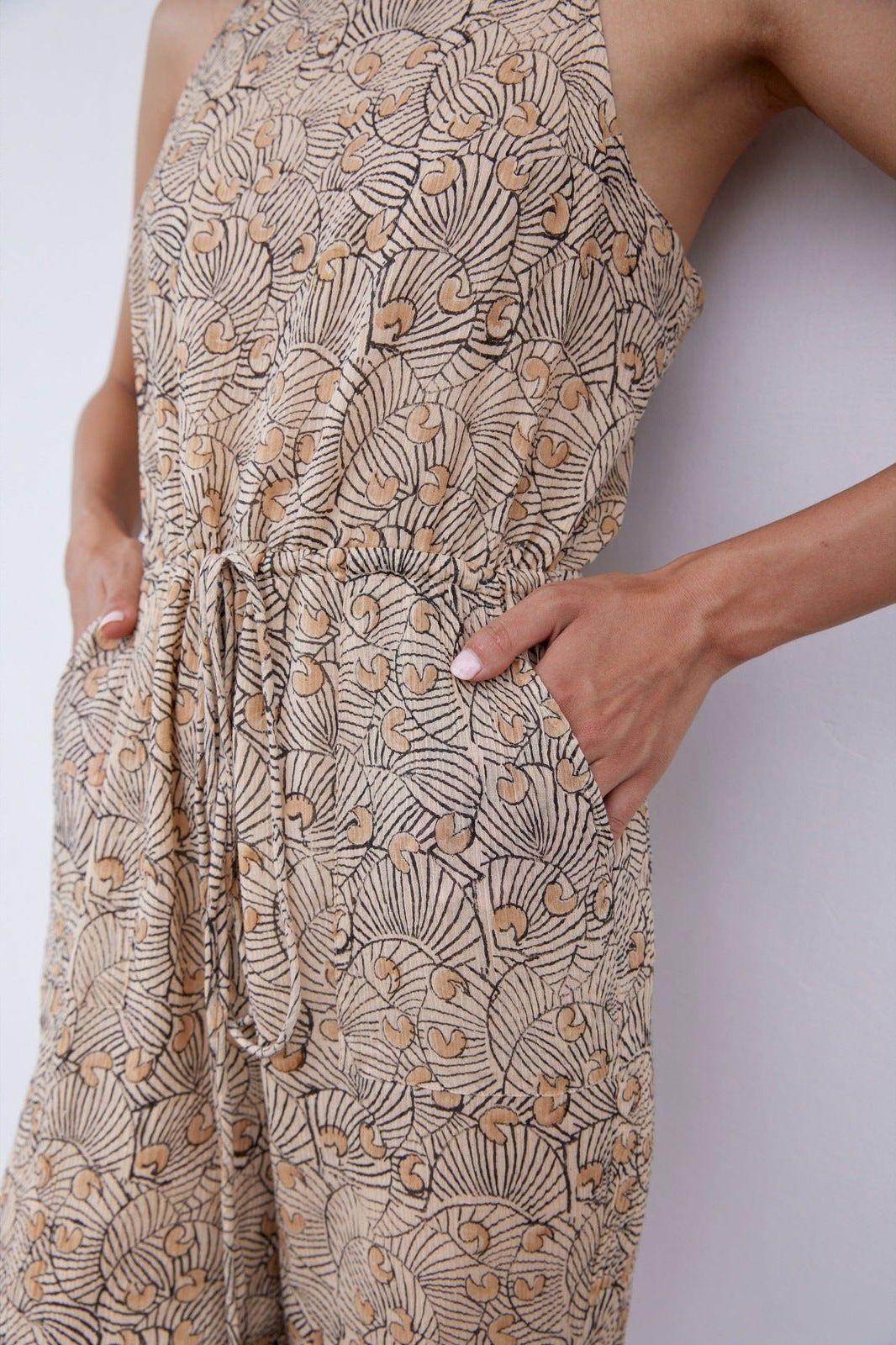 Hand-Printed Simané Jumpsuit (Desert Sand)
