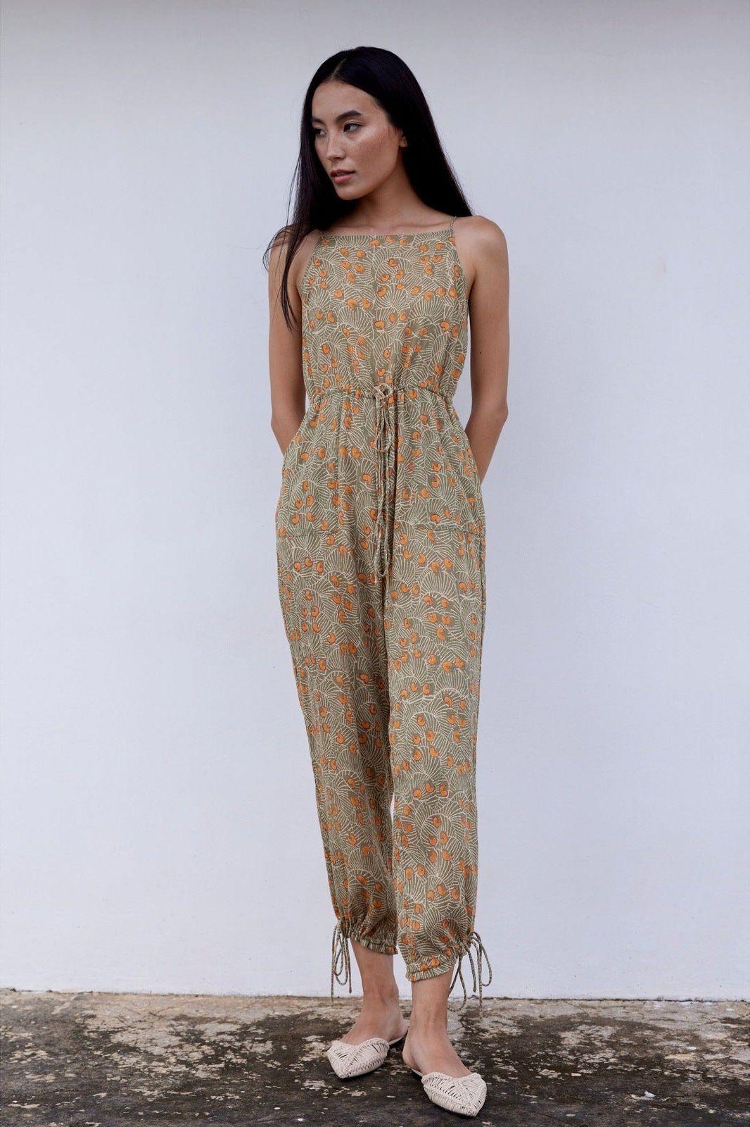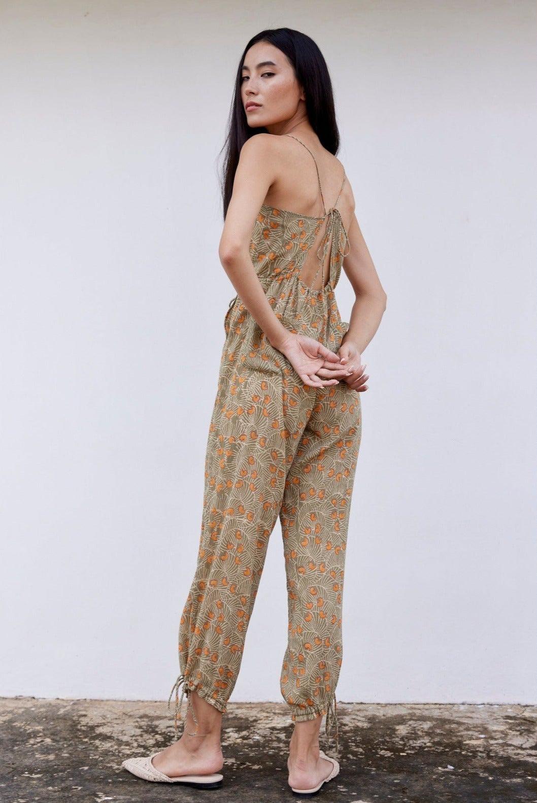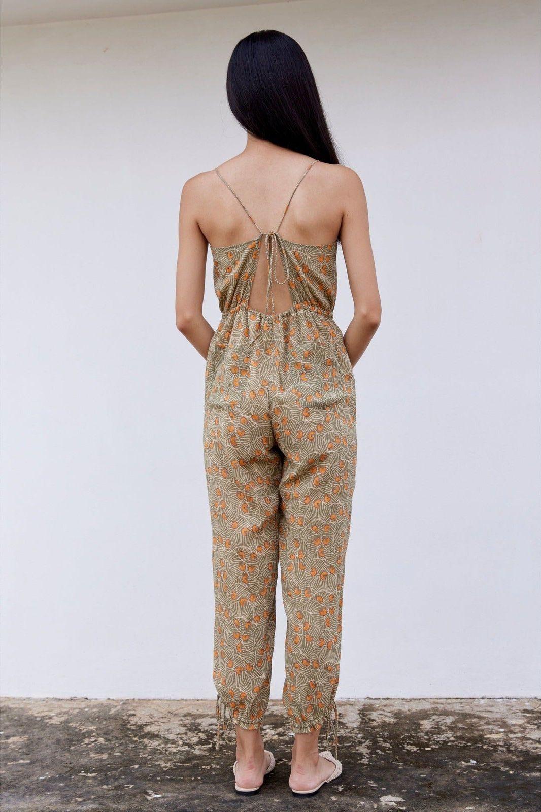 Hand-Printed Simané Jumpsuit (Safari Green)