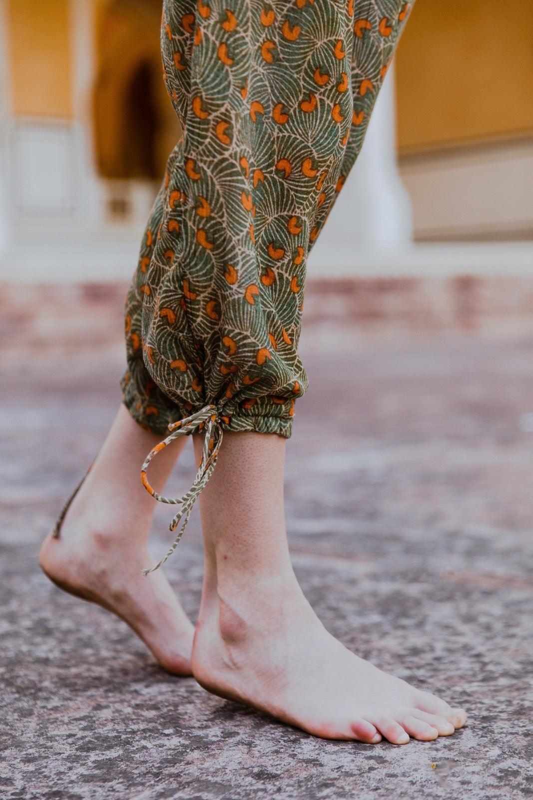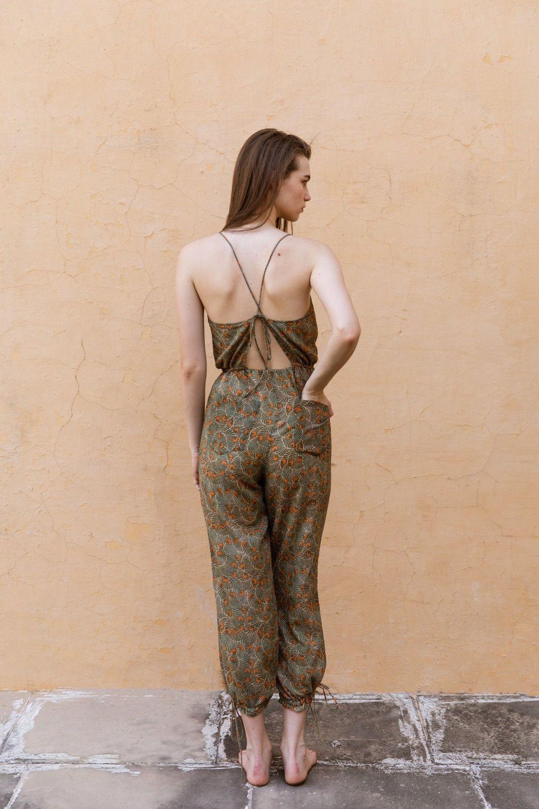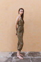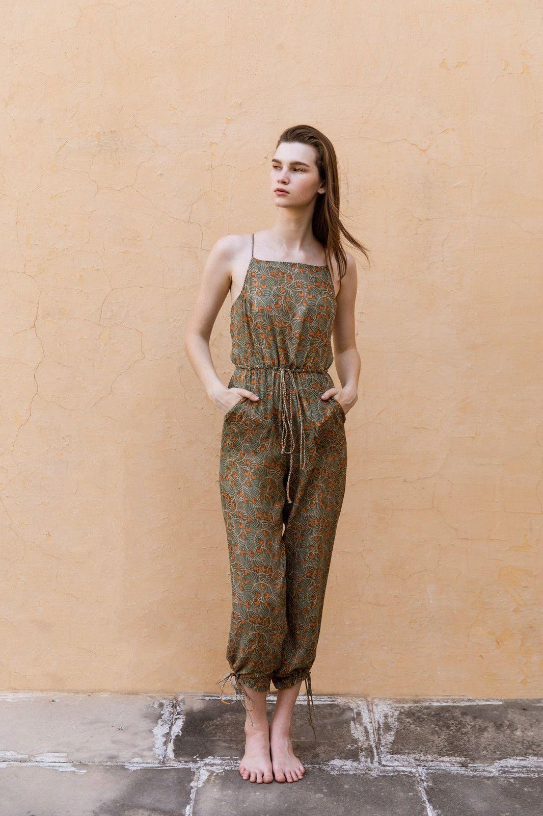 Hand-Printed Simané Jumpsuit (Safari Green)