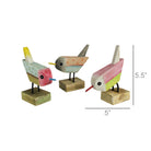 Primitive shapes and charming hand-painted details are the simple recipe creating this lovable flock of birds. Not intended as a toy.