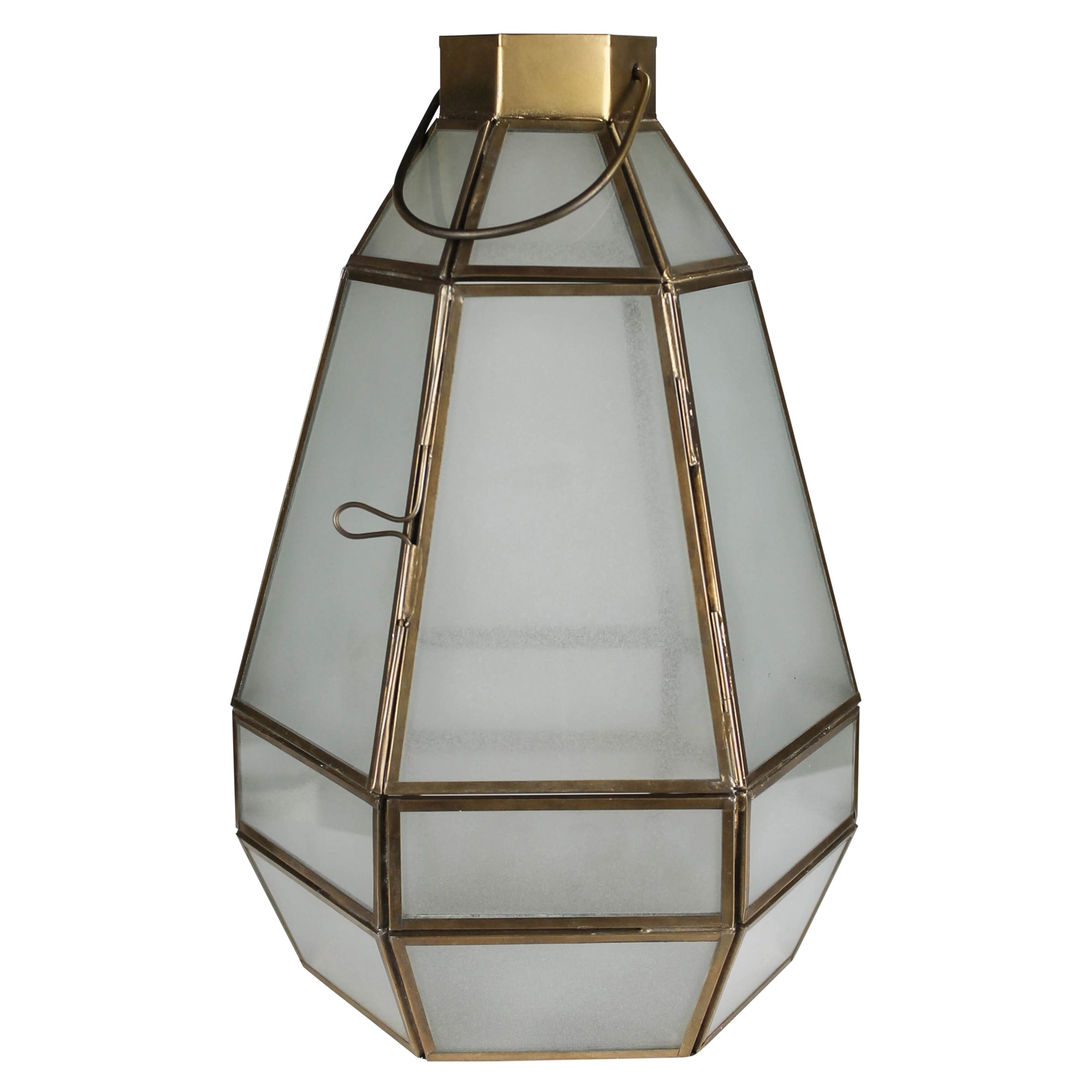 Crafted of panes of frosted leaded glass, this lantern has a burnished brass finish perfect for both casual and formal settings.