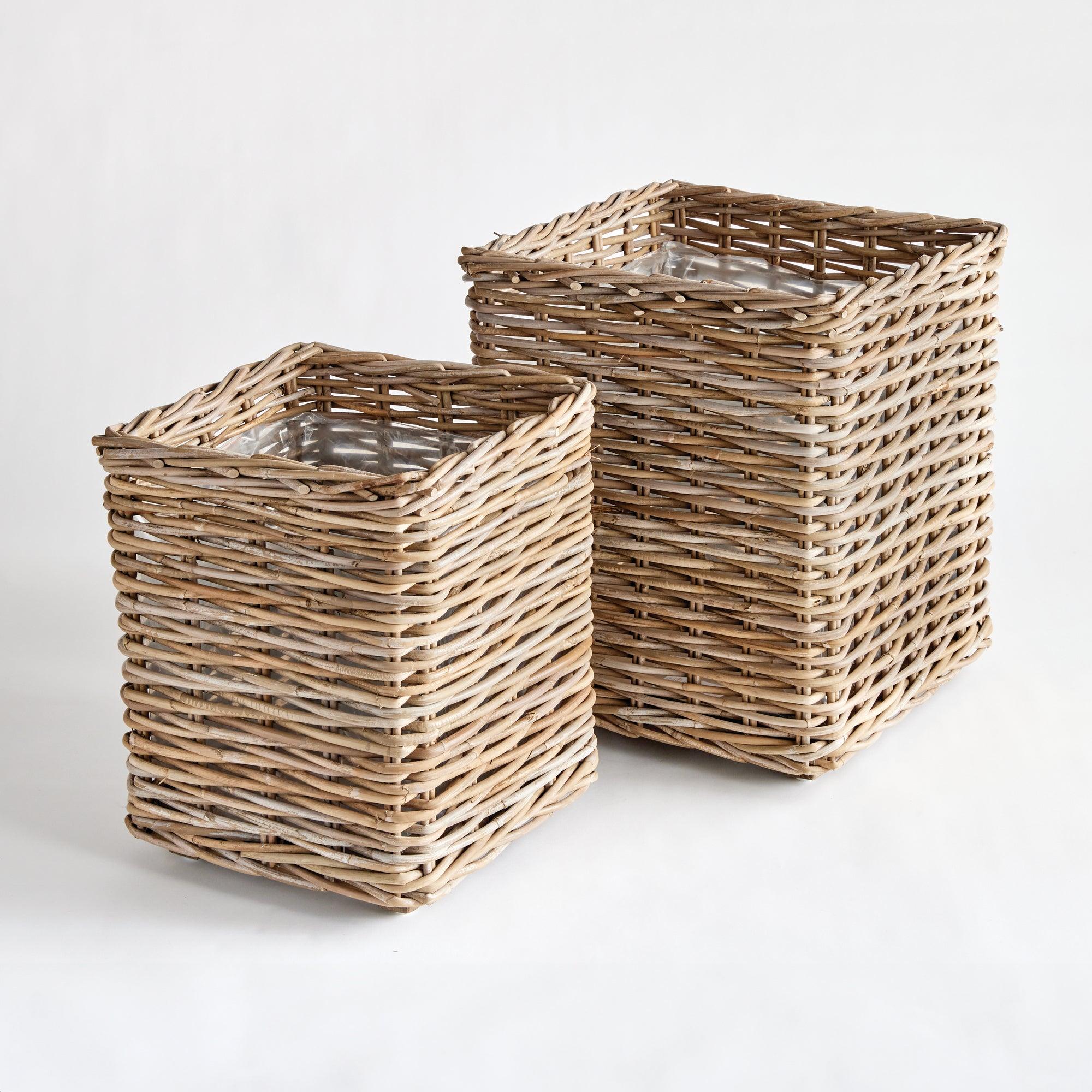 These overscale rectangular planters will steal the show! Designed with a solid wood frame for stability, and elevation, and fitted with plastic liners to keep them clean and dry. This set of two make a stunning coordinating set for your creative planting.