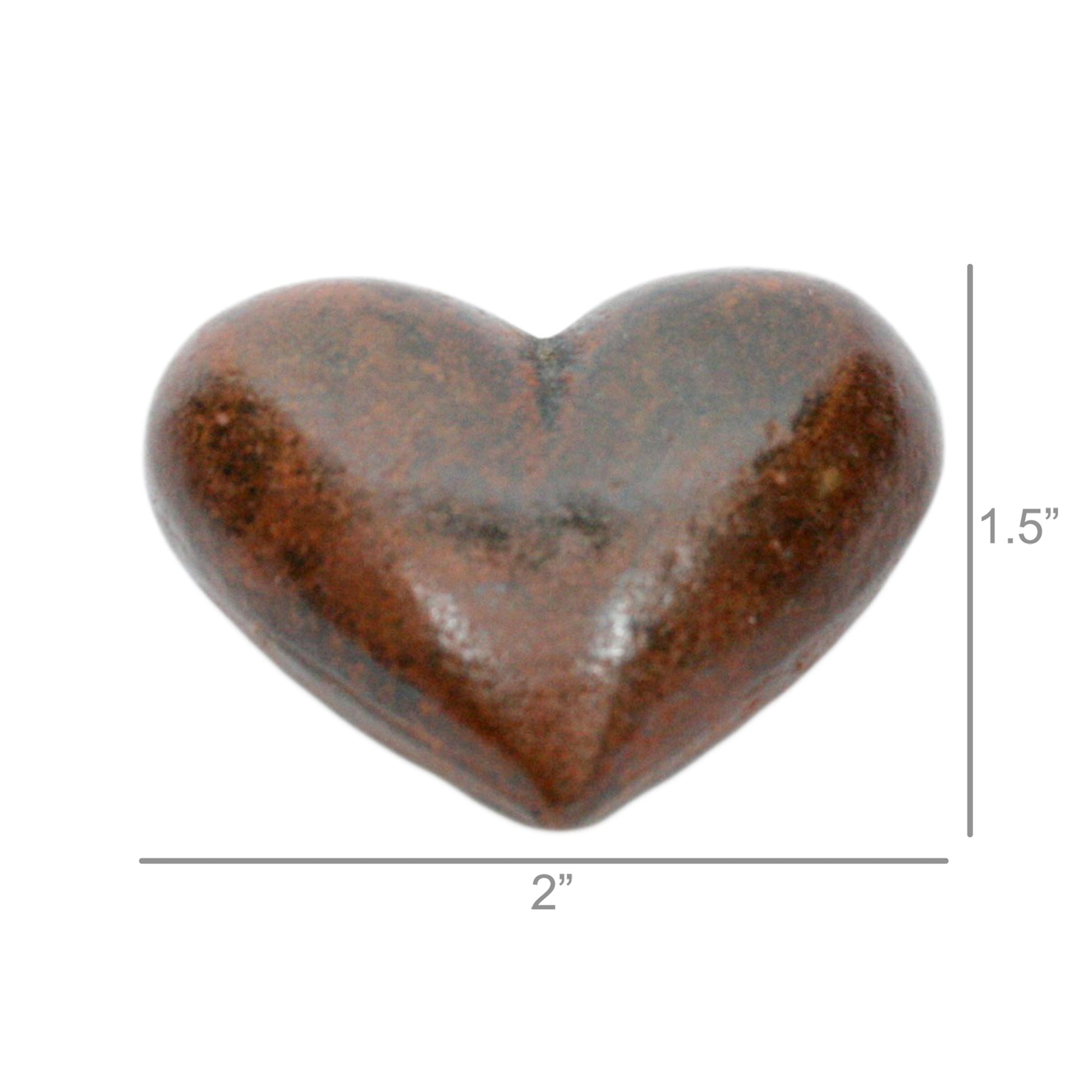 The Cast Iron heart is hand painted and distressed in three color ways. The heavy hearts are a reminder of lasting love, and can be used as rustic romantic dcor, paperweights, or a given as a gift. Wipe with dry cloth