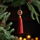 Elegant Festive Design – Features a soft red tassel with gold and jeweled accents for a refined holiday aesthetic.