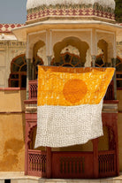 The design is hand-pressed onto each quilt using hand-carved wooden blocks dipped in dyes. The printed cotton shells are brought to the homes of quiltmakers, who stuff and stitch the quilts by hand, creating the final product.