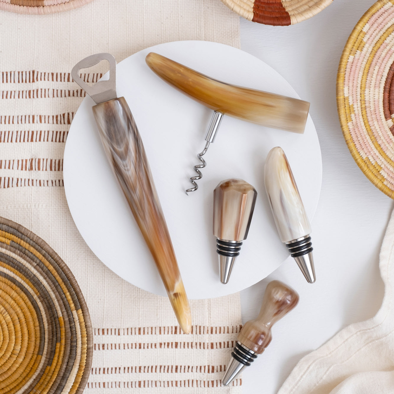 Top your favorite bottle with this gorgeous Ankole Horn Tip Wine Cork. It's a perfect gift for your favorite wine enthusist or ethical addition to your curated in-home wine bar. Assorted color tones.