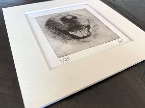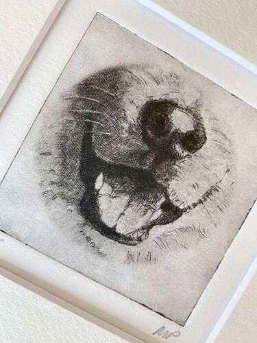 Pre-made mini pet portrait etchings ready to ship! I can personalize with your pet’s name as the title of the artwork.