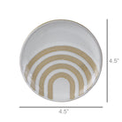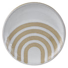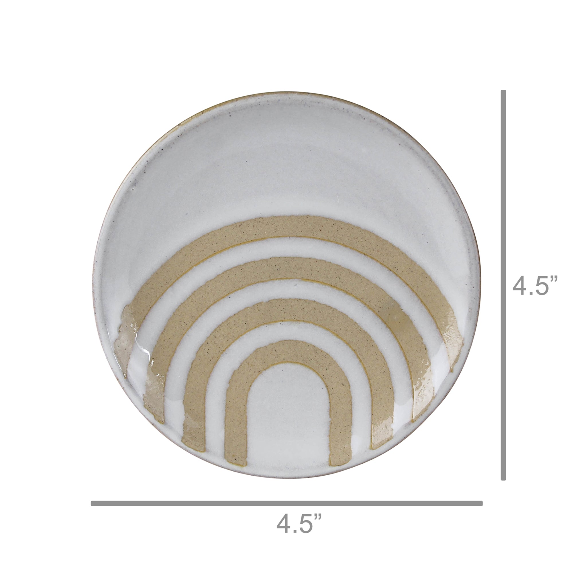 This round trays with a gloss white glaze over natural ceramic with a rainbow icon serve as a coaster or a place to catch coins, knick knacks and jewelry.