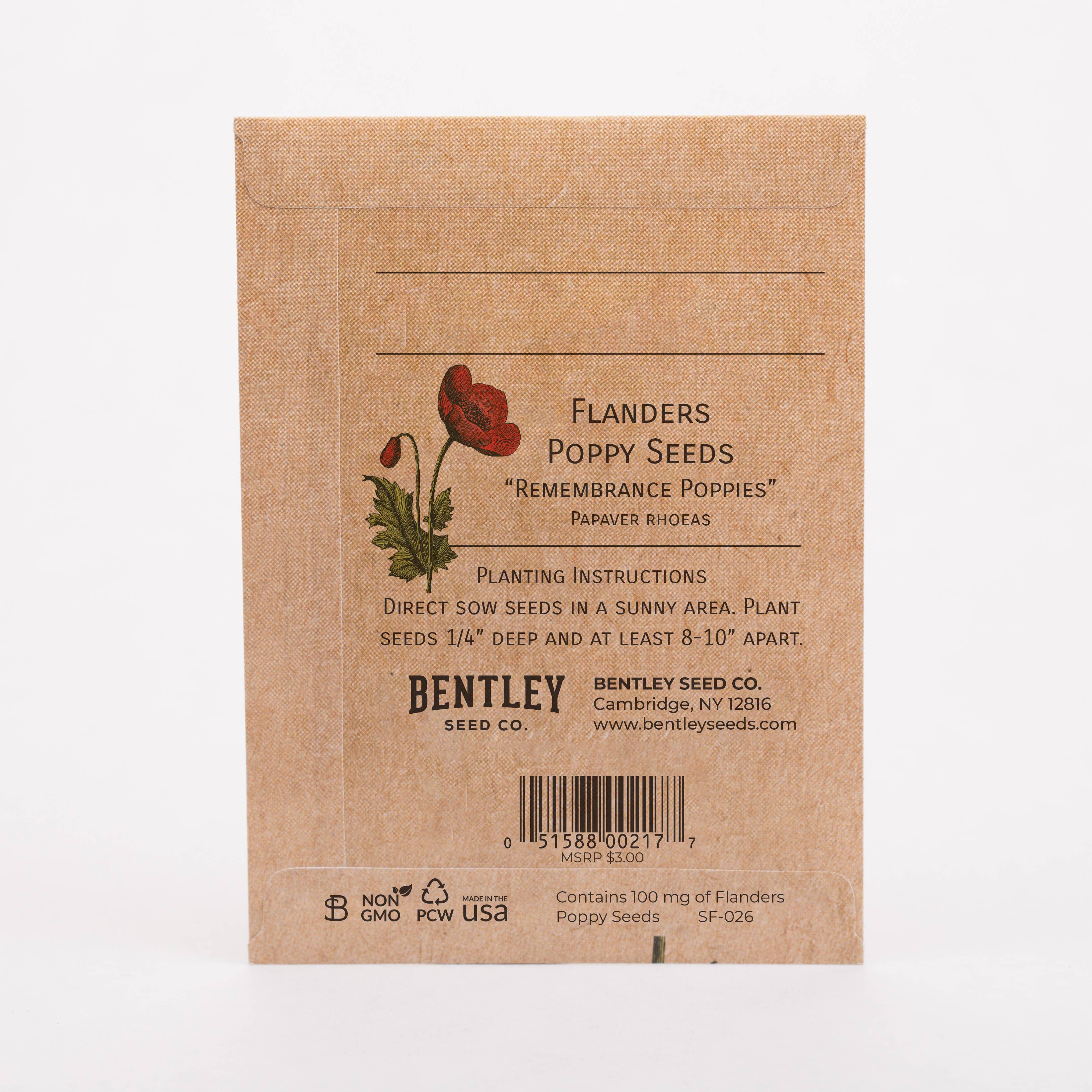 The sophisticated design and handcrafted appearance of this packet evokes a vintage aesthetic. Perfect as a favor or memorial card, this Flanders poppy seeds packet serves as a reminder of a loved one who has passed. Poppies have long been associated with remembrance, and these seeds will bloom season after season, keeping their memory alive. For another option, check out our other card featuring poppy seeds. Packet size: 3 ¼" x 4 ½" Planting Directions for Flanders Poppies - Simply scatter seeds thinly in a prepared garden bed and keep the soil moist until the seedlings emerge. Once they do, thin them to 4-6" apart for optimal growth.