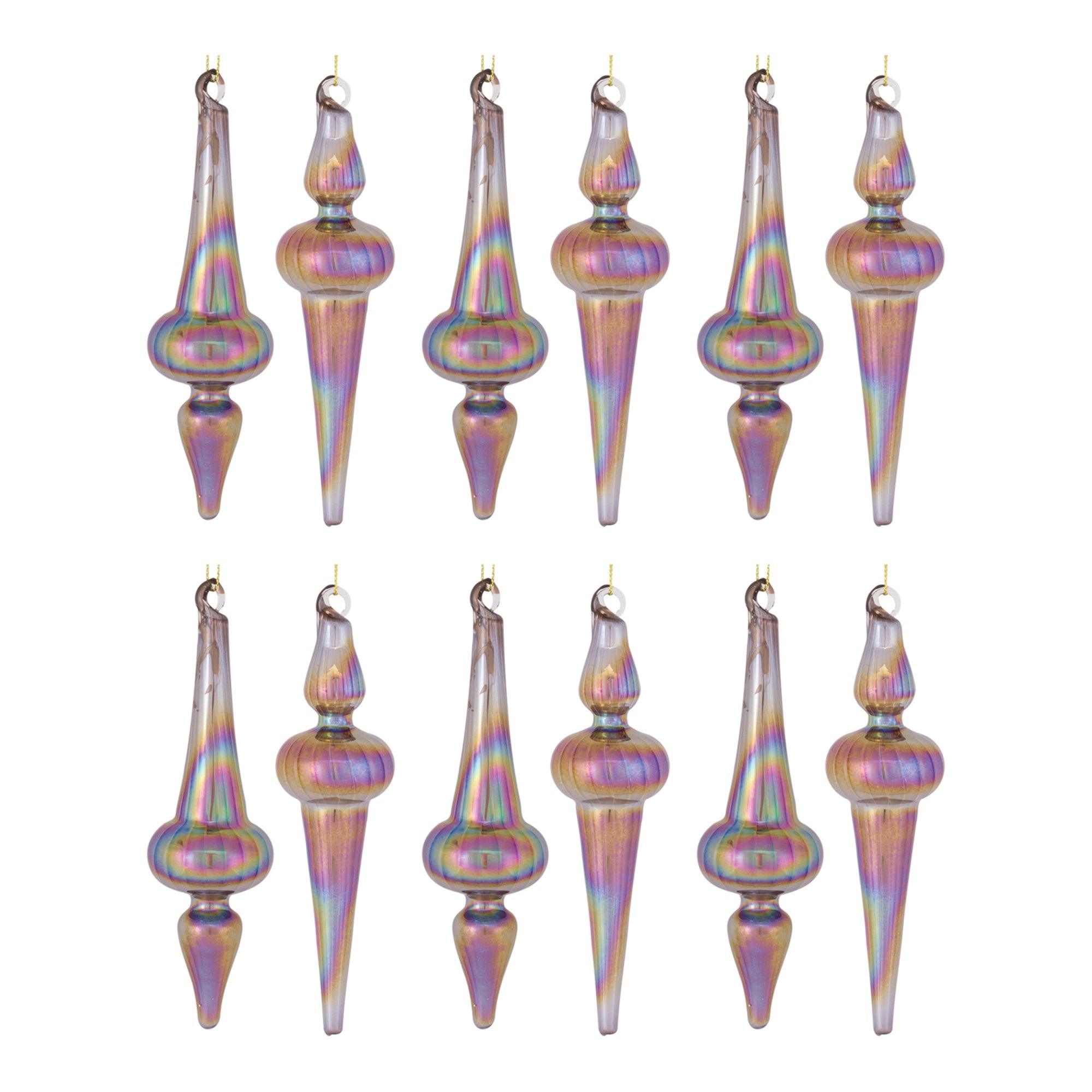 Irredescent Glass Finial Drop Ornament (Set of 12)