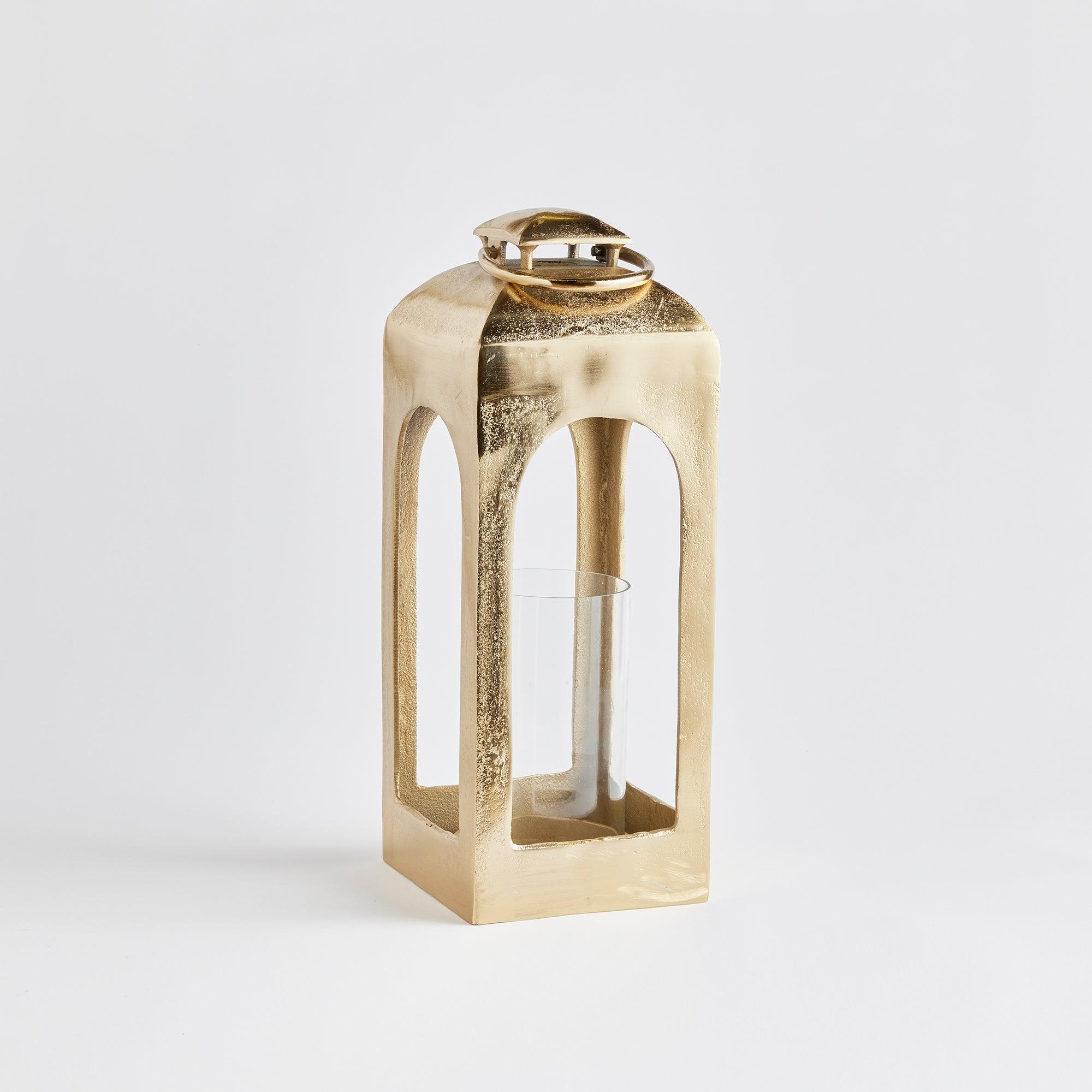Go big on glam with this large-scale statement lantern in a champagne gold finish. Made of cast aluminum, a sophisticated look for your upscale indoor space.