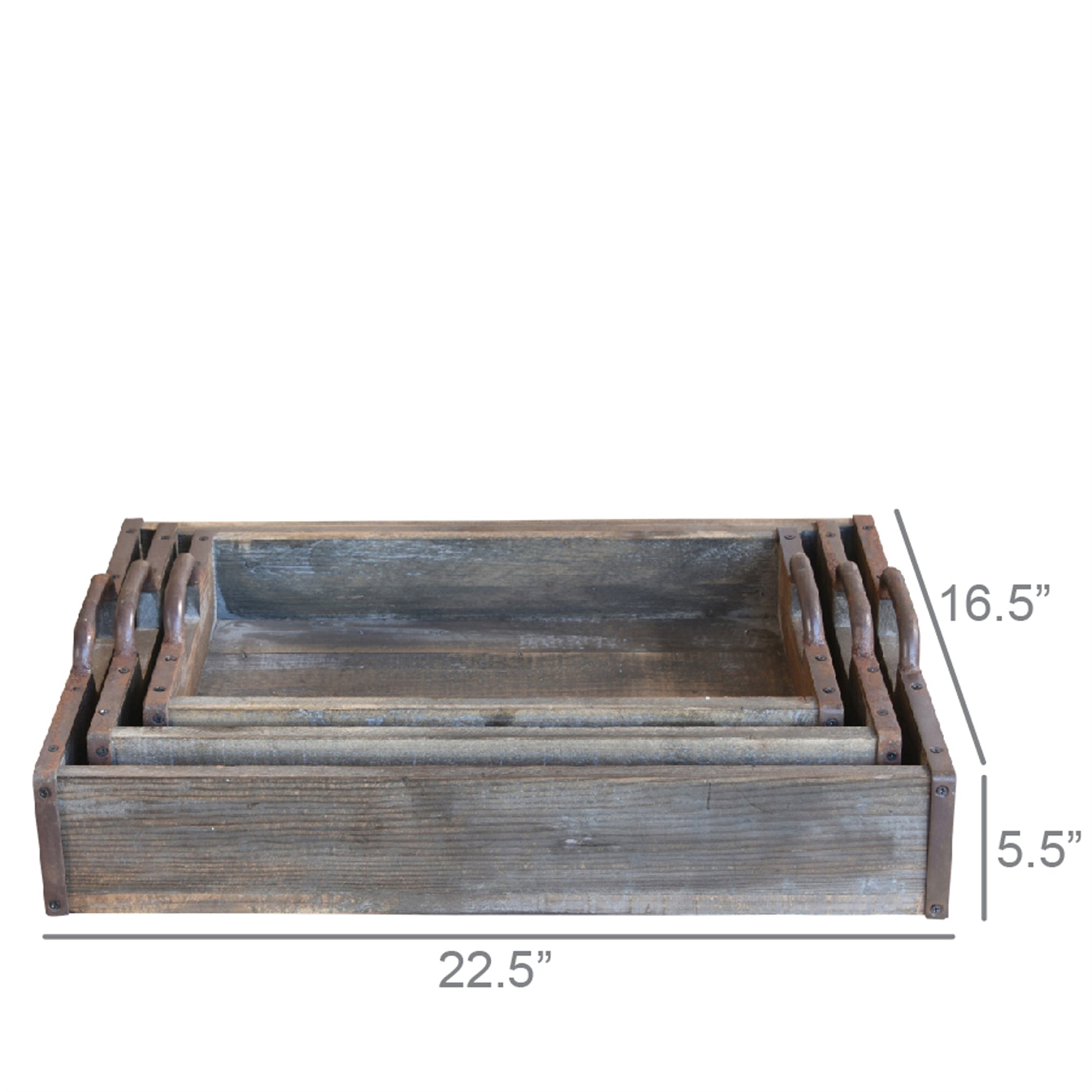 Our rustic wood trays have metal strapped handles to carry anything and everything (from the terra cotta pots to the wine and glasses!) to the garden party. This nesting set of three proves its purpose both individually and together.