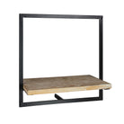 A display unto themselves, the simple lines of this shelf frames a space to make even the most ordinary of objects take on an air of importance. Metal frame with whitewashed wood shelves.