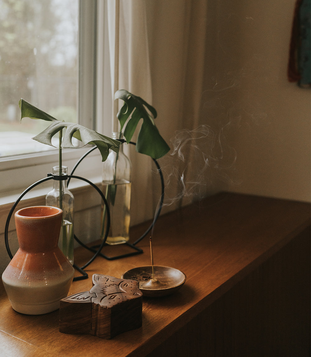 Jyotisha Celestial Round Incense Holder - Wood, Brass