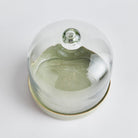 This charming tray and cloche set is made for the modern homemaker. The iron tray is finished in a muted green enamel with gold foil edging. Topped with a glass cloche just to keep things fresh.