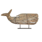 The weathered wood, wire thatching and a subtle whitewash finish of our hand carved sperm whale are accented by the coarse and uneven grain of Kiri Wood.