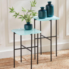 -Icy Blue;-Iron and Glass Top