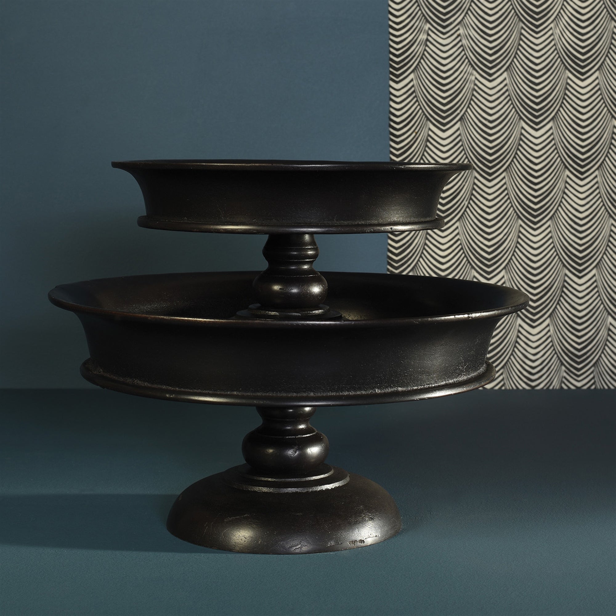 Cast of aluminum and plated in bronze the shape is bold and the scale commanding - fit to flaunt everything from ornamental objects to fanciful fruit. A food-safe liner is required if using for food.