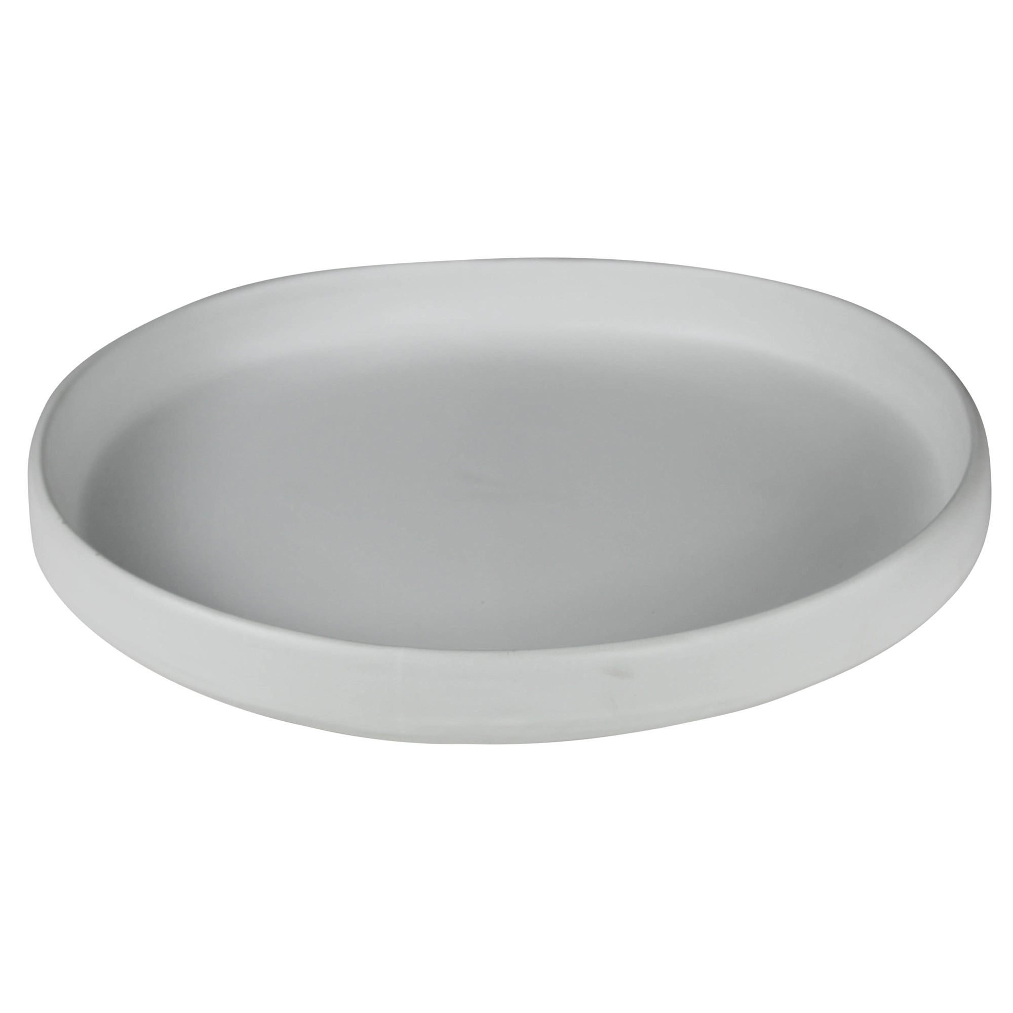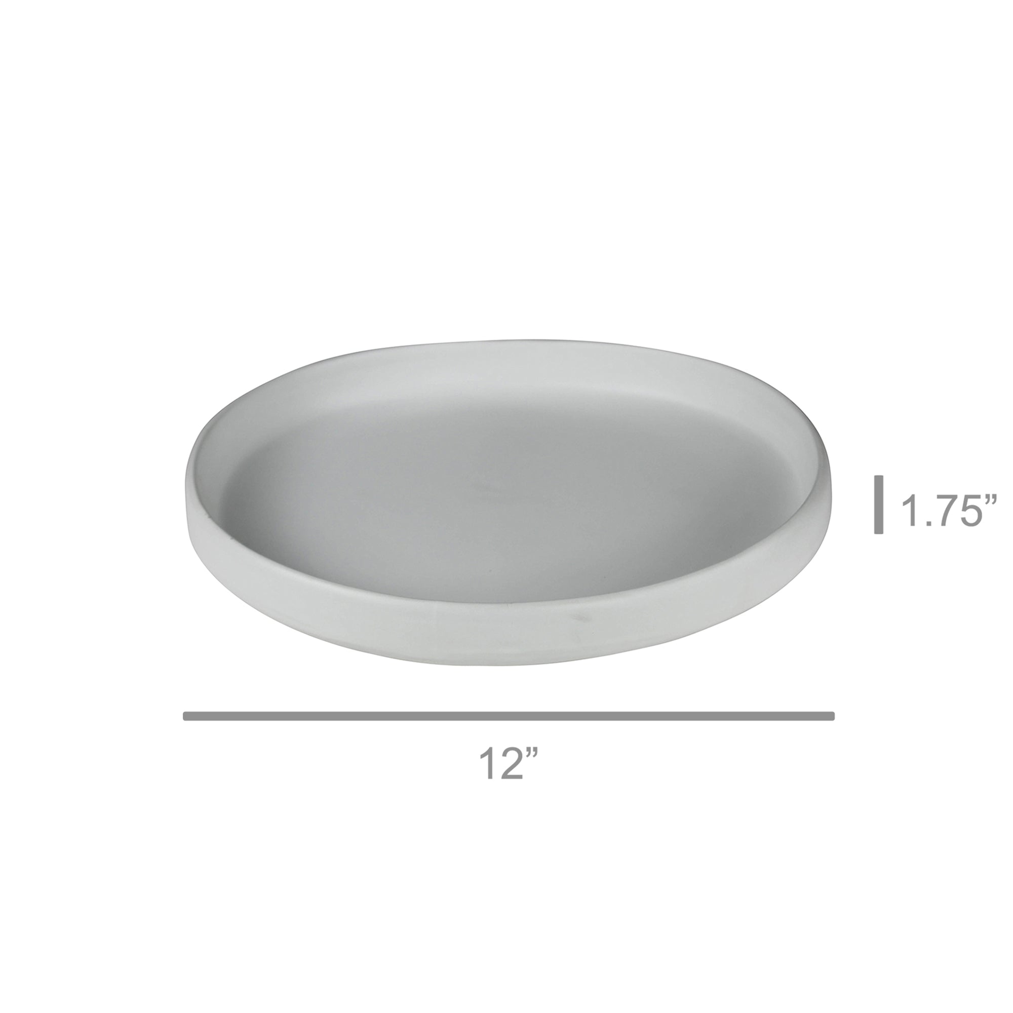 Slightly oblong with a hint of an organic edge this platter is crafted of ceramic with a matte white glaze. The grand scale features the food it presents as almost an art form. Dishwasher and microwave safe.