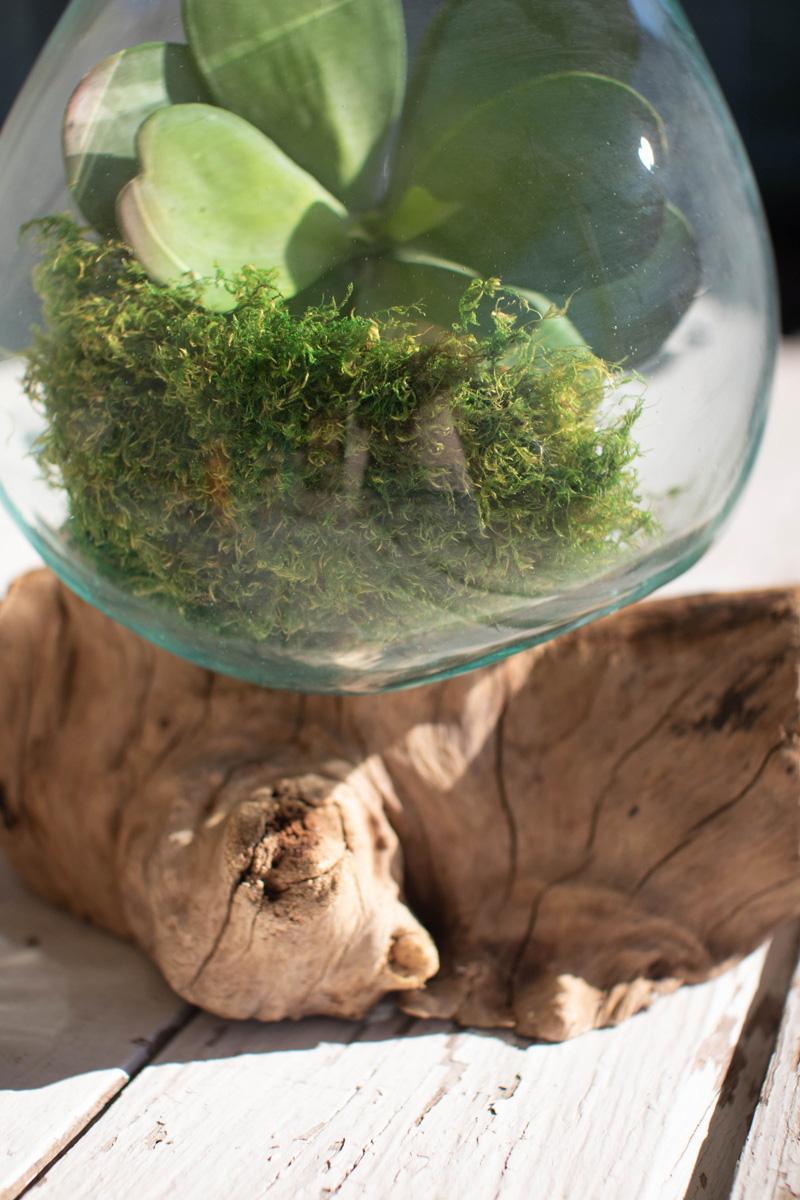 This wood and glass terrarium, handmade in Indonesia, is ready for all your collections of shells or rocks. Show off your succulents or keep the pocket change out of the washer. This versatile piece suits any decor.