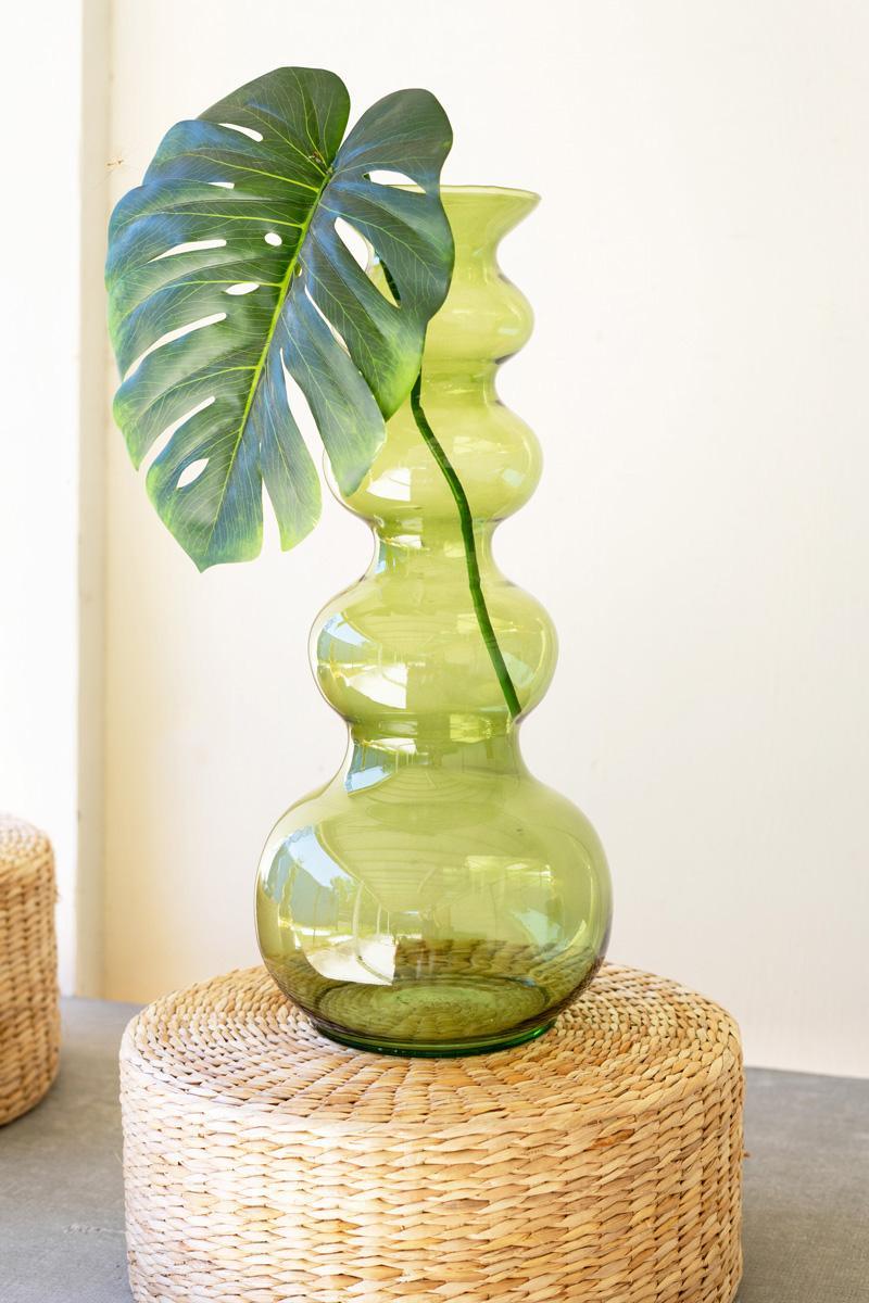 Hold the flowers. This large bubble vase in green does the job. This vase suits any space and makes a great gift.