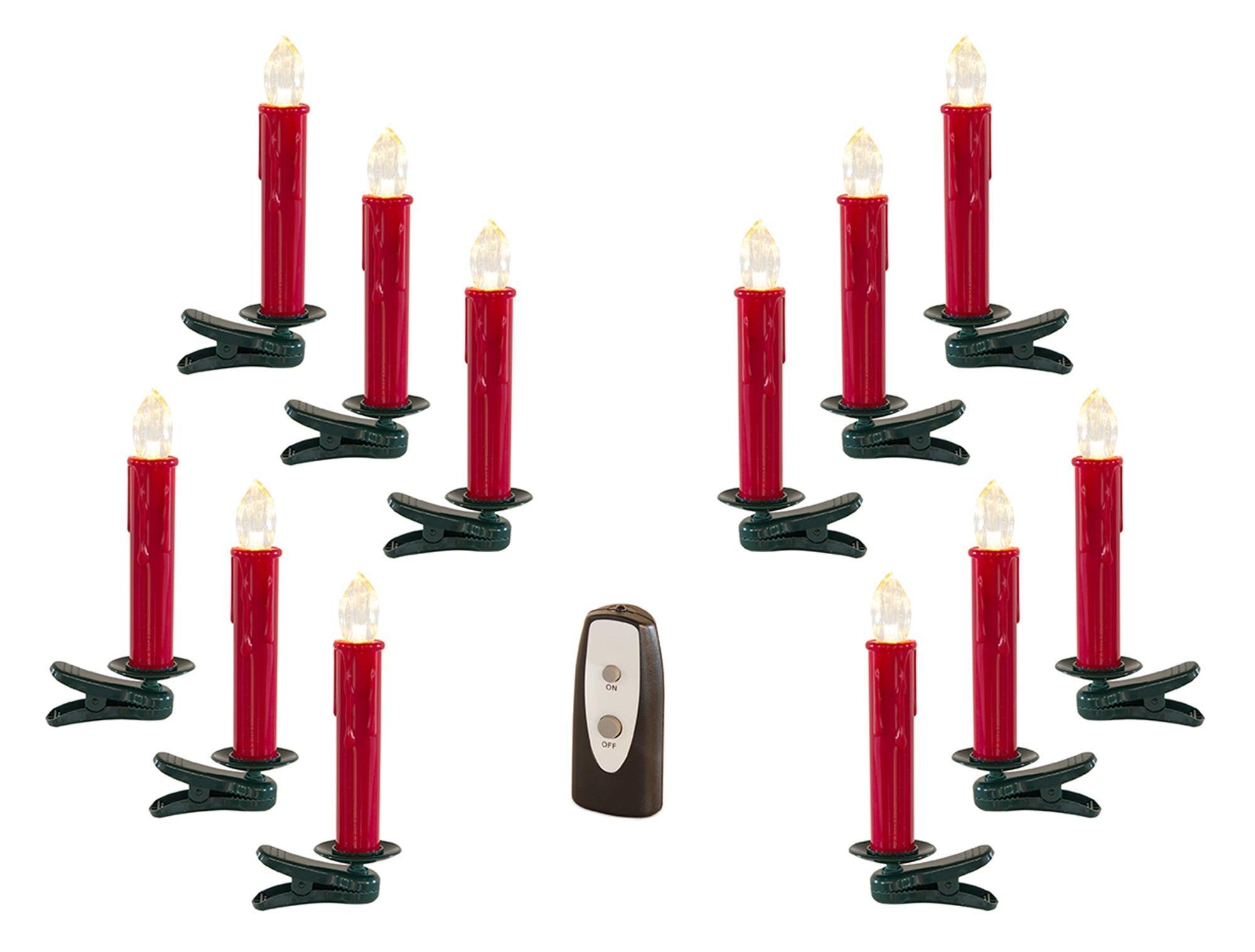 Add the beauty and ambiance flickering candles to your home with this stunning set of Red LED Clip-on Taper Candles. It has the appearance and texture of a real candle, but does not lend to the burnt smell and hazards involved with an open flame. The clip-on feature makes them the perfect addition to your holiday Christmas tree. This set features a remote control with a 4 and 8 hour timer fucntion, making it the perfect, hassle-free addition to your holiday home decor.