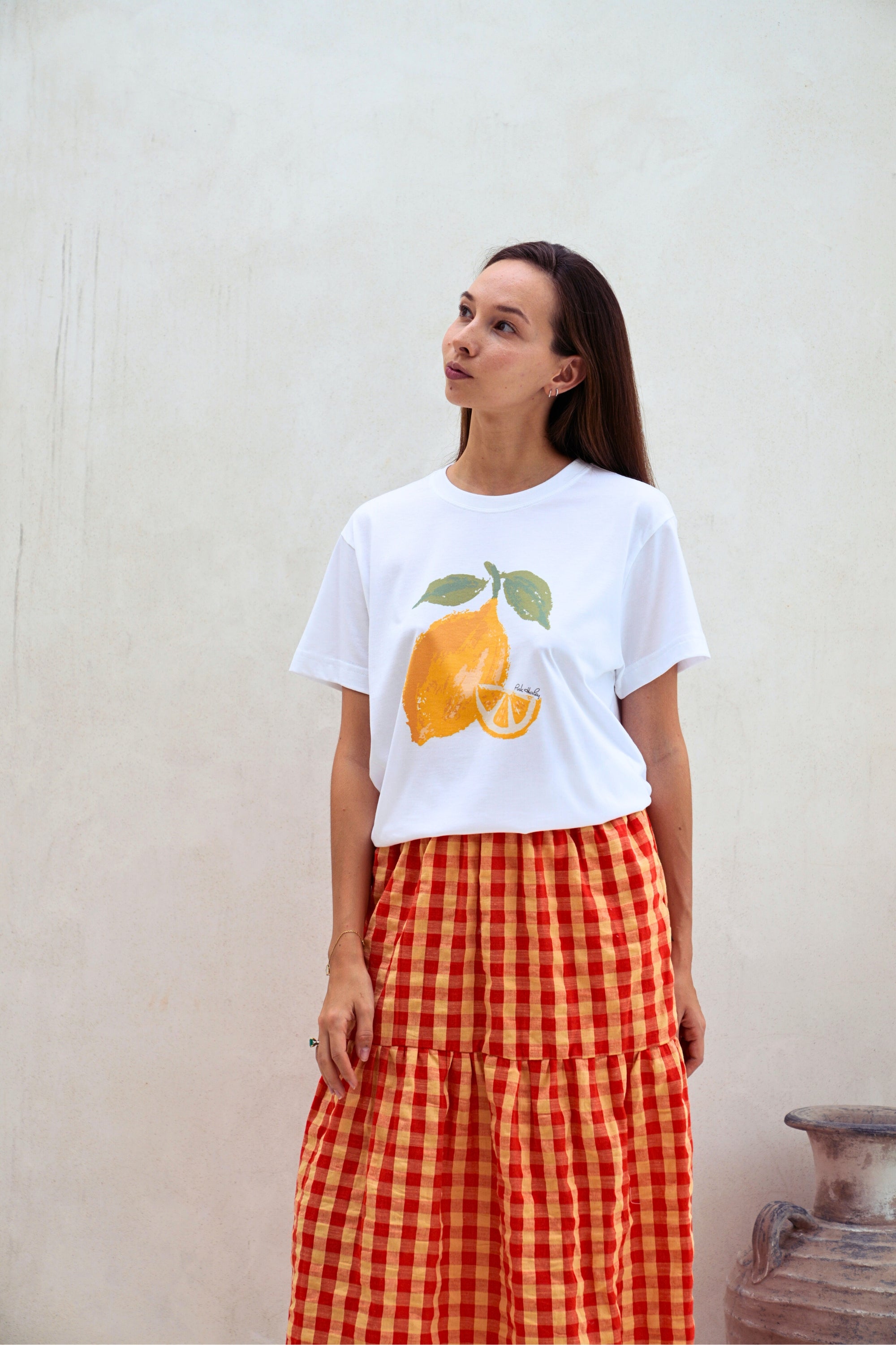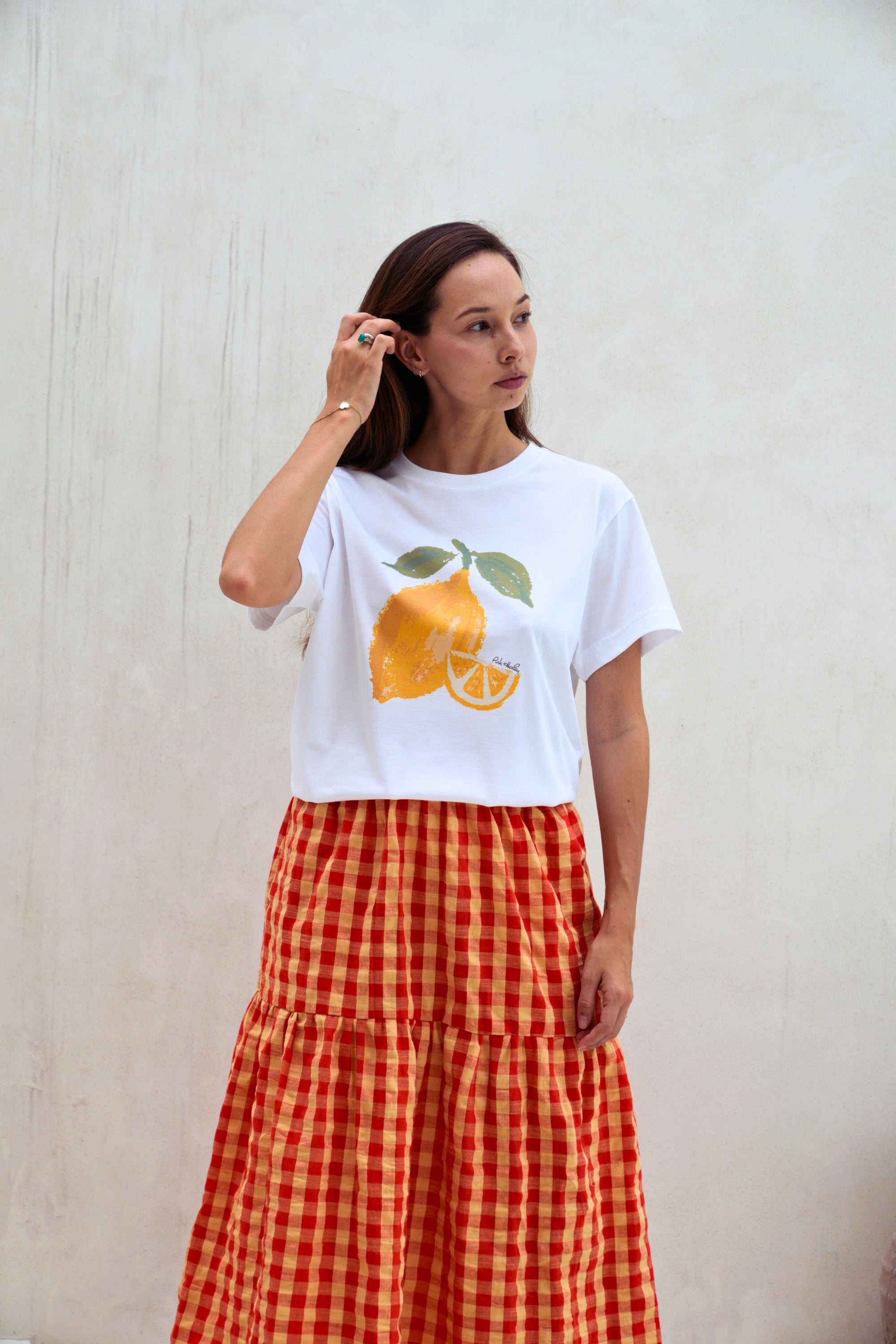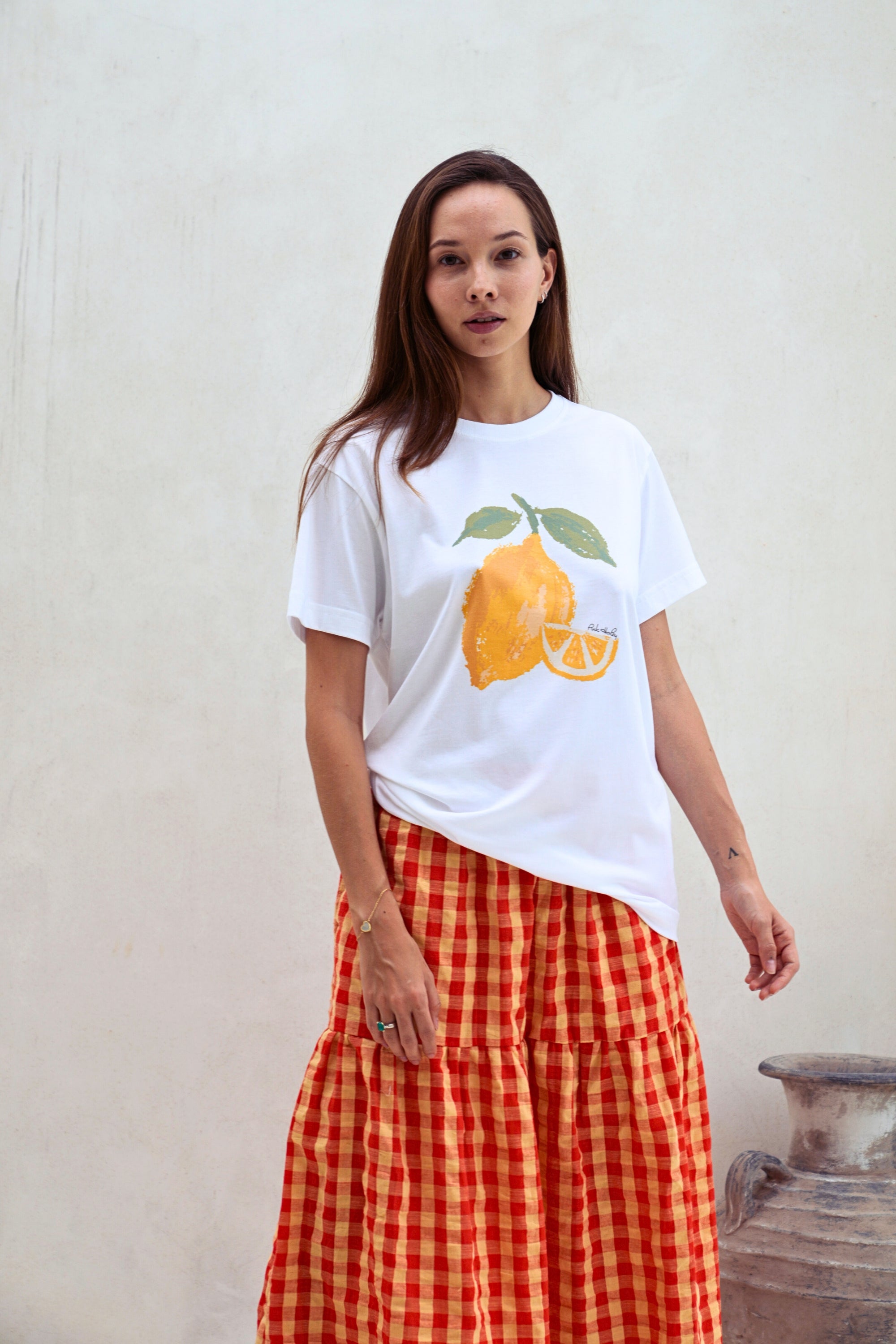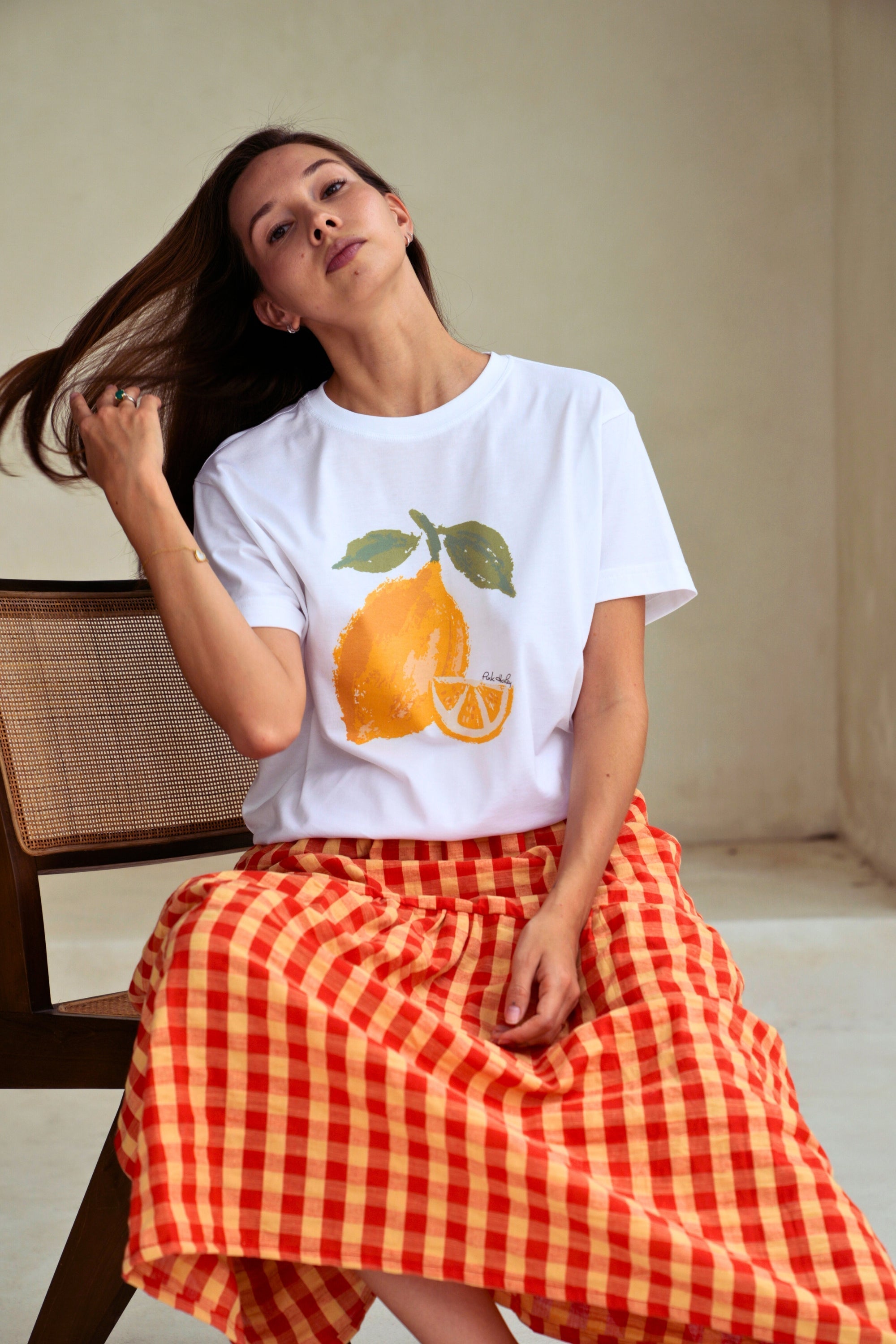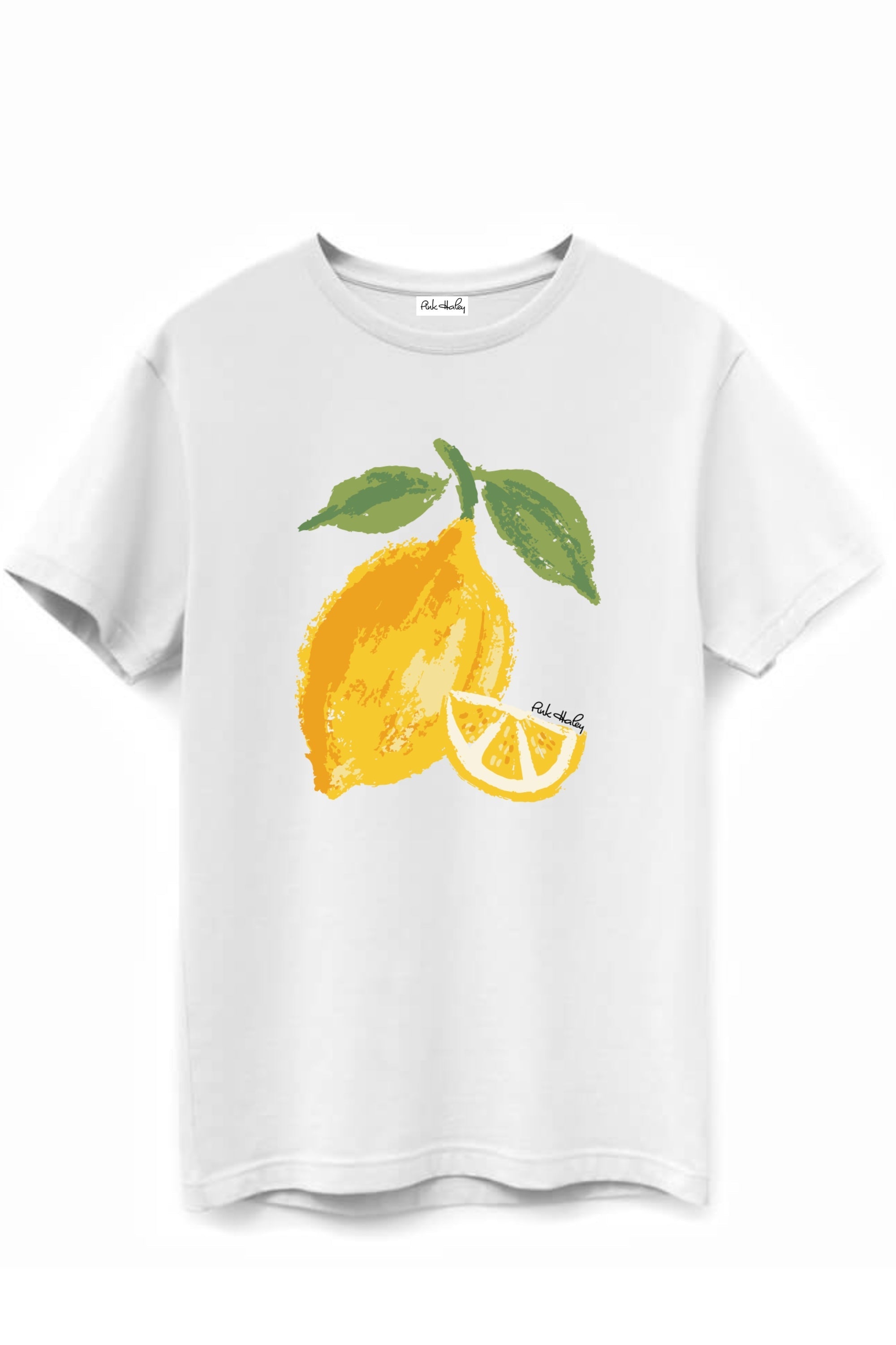 Leave the lemon at home and show off your lively, outspoken side in this lovely soft SUPIMA cotton and fruit illustration printed crewneck T-shirt.