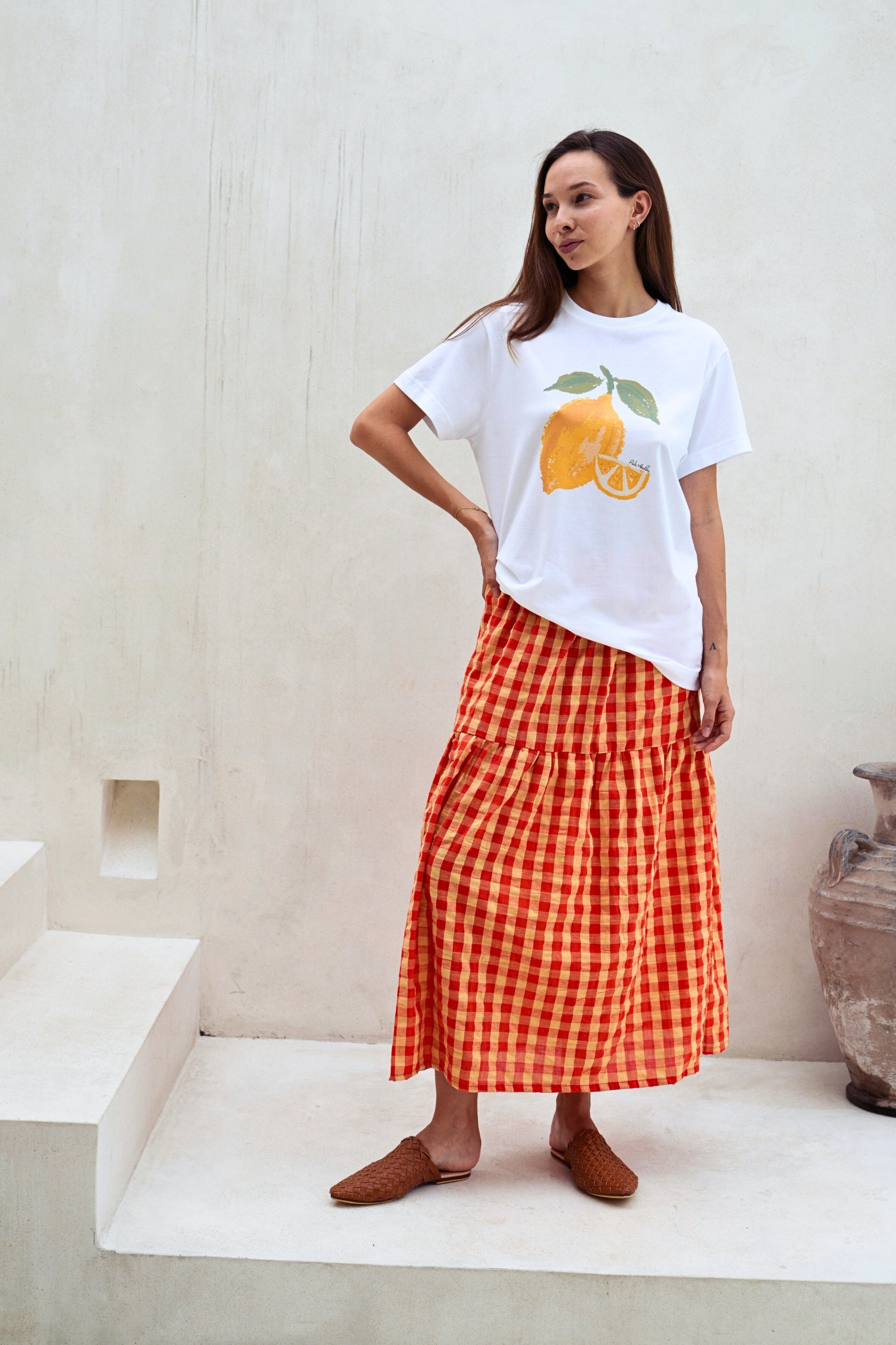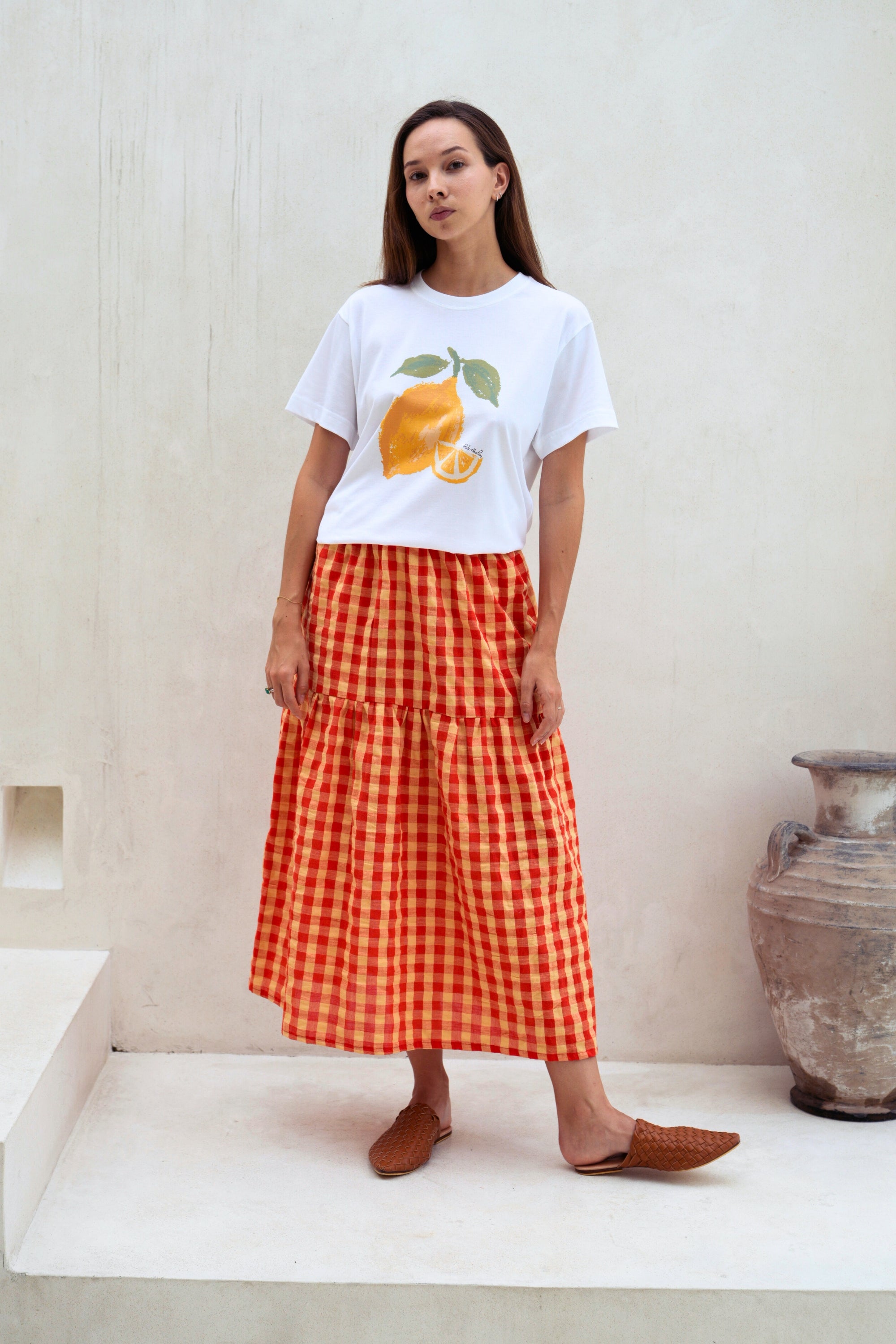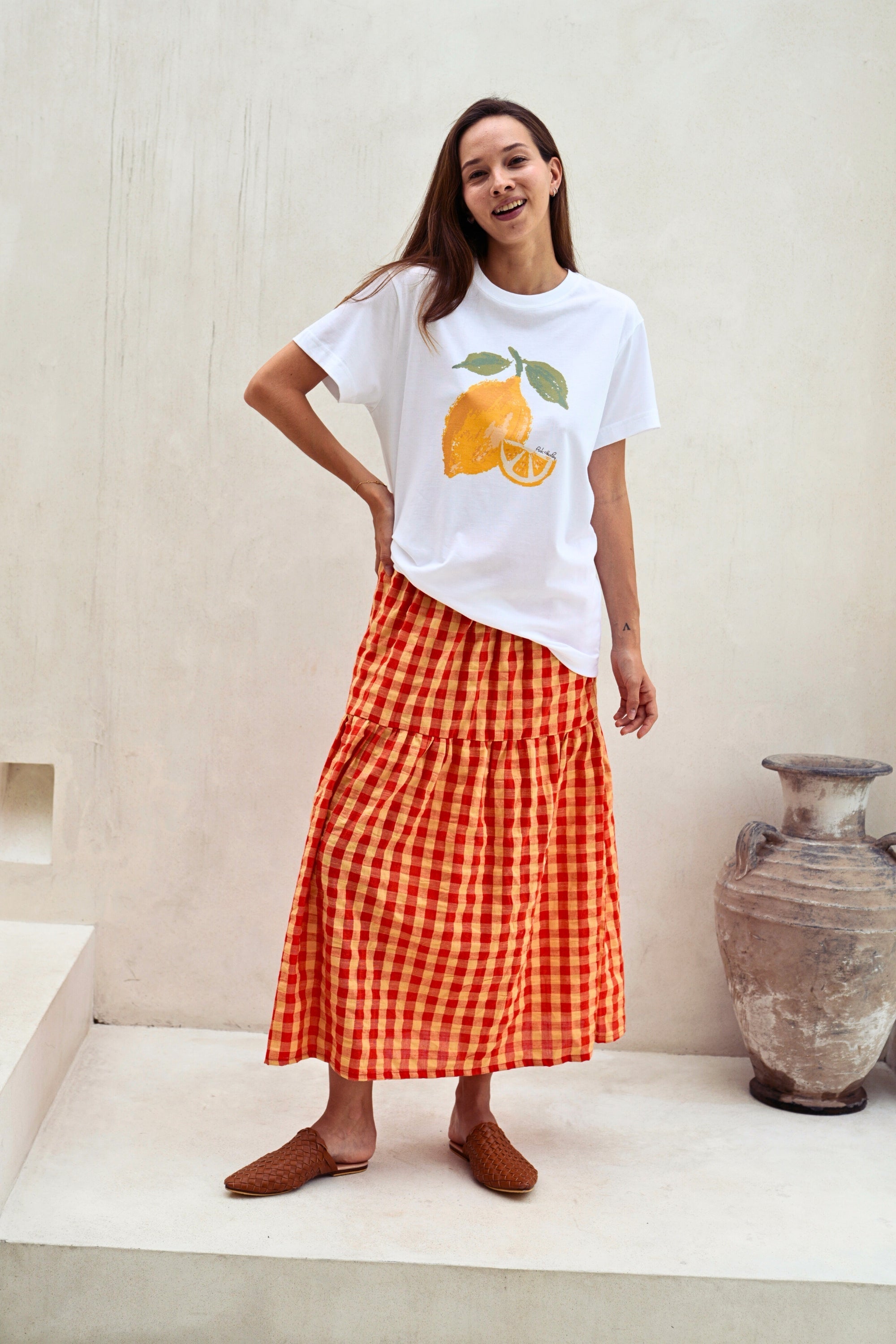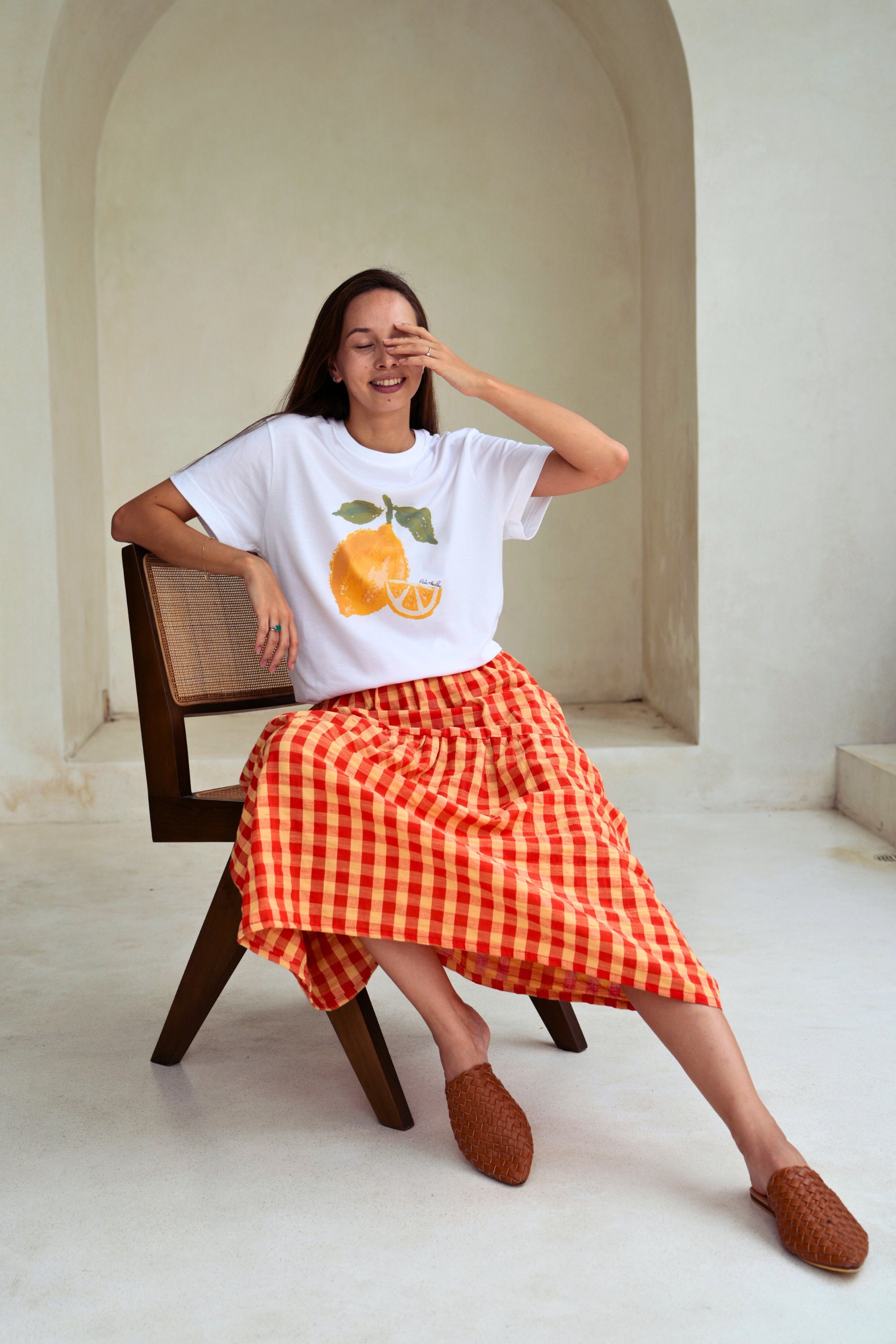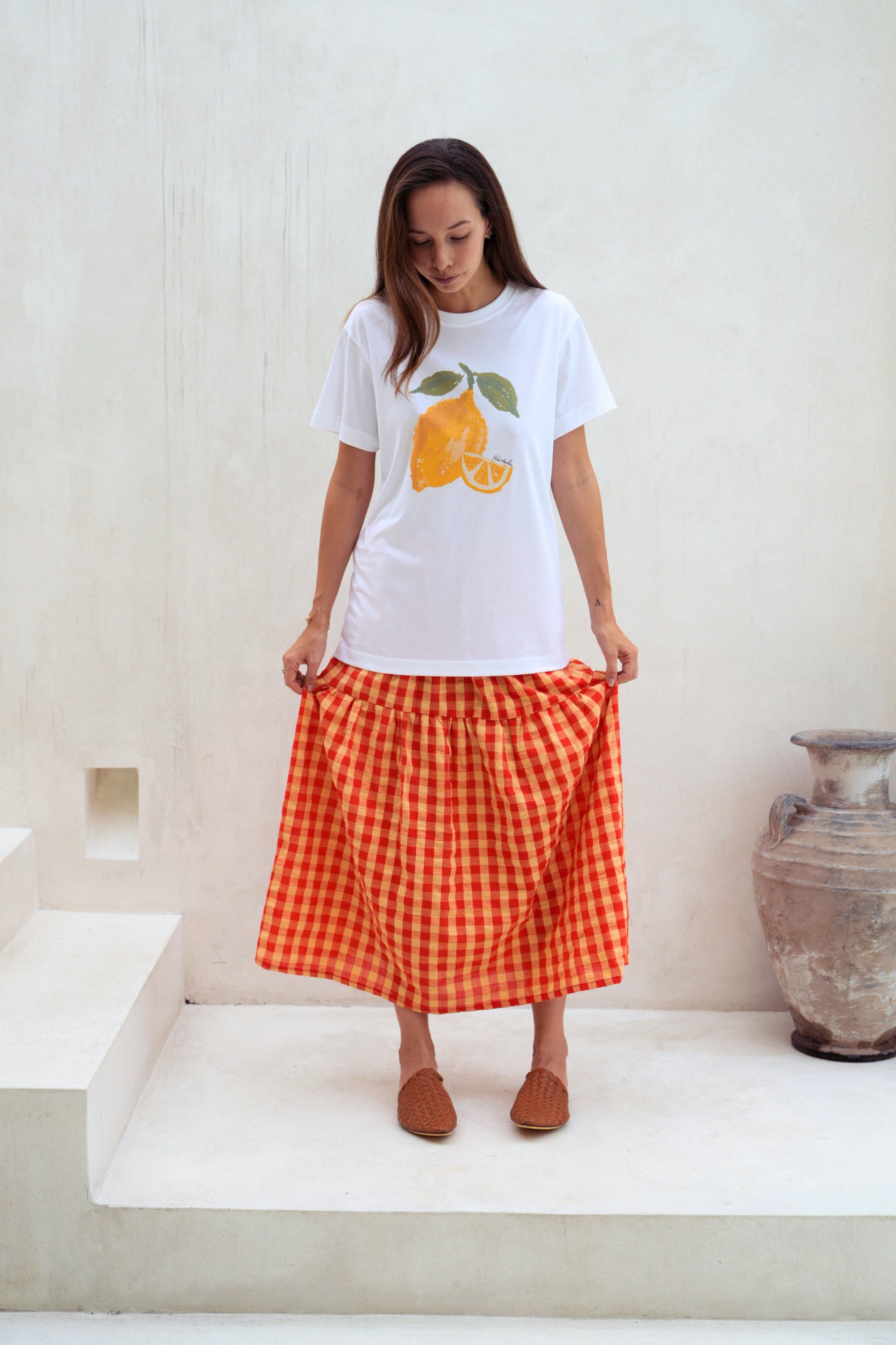 Leave the lemon at home and show off your lively, outspoken side in this lovely soft SUPIMA cotton and fruit illustration printed crewneck T-shirt.