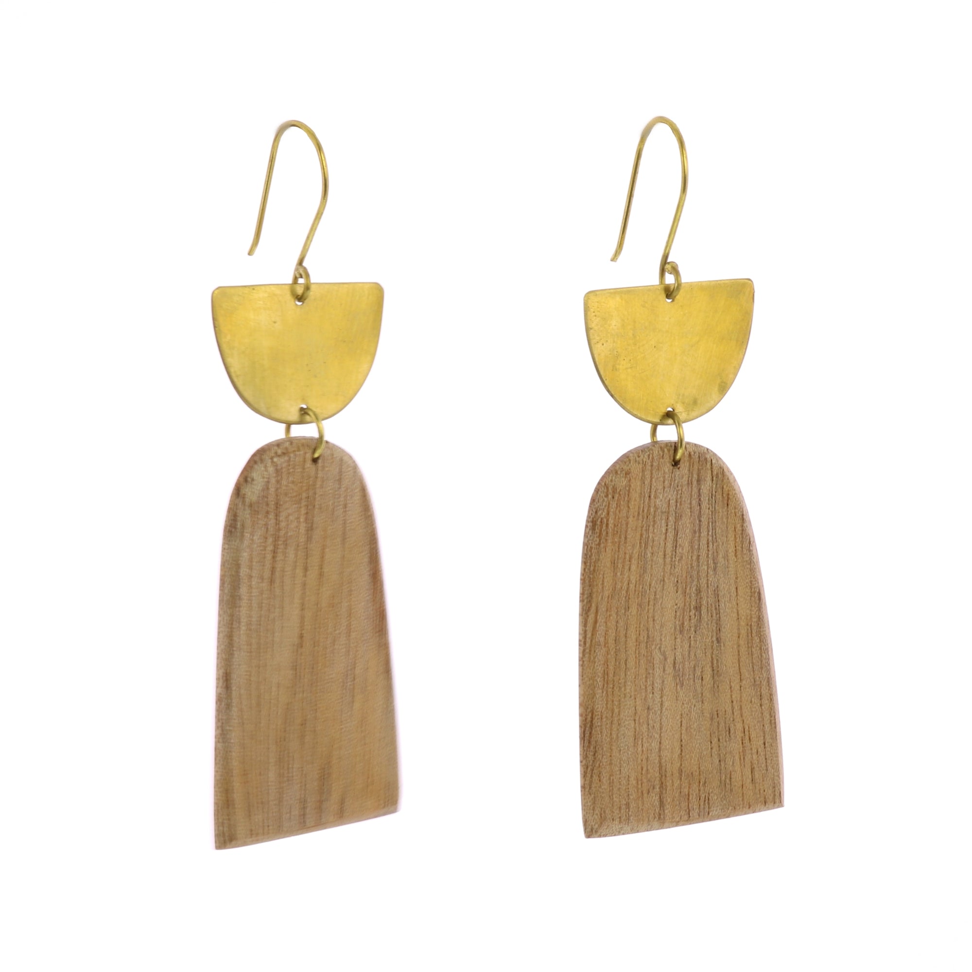 Leucadia Earrings, Brass & Wood - Arches - Light Wood