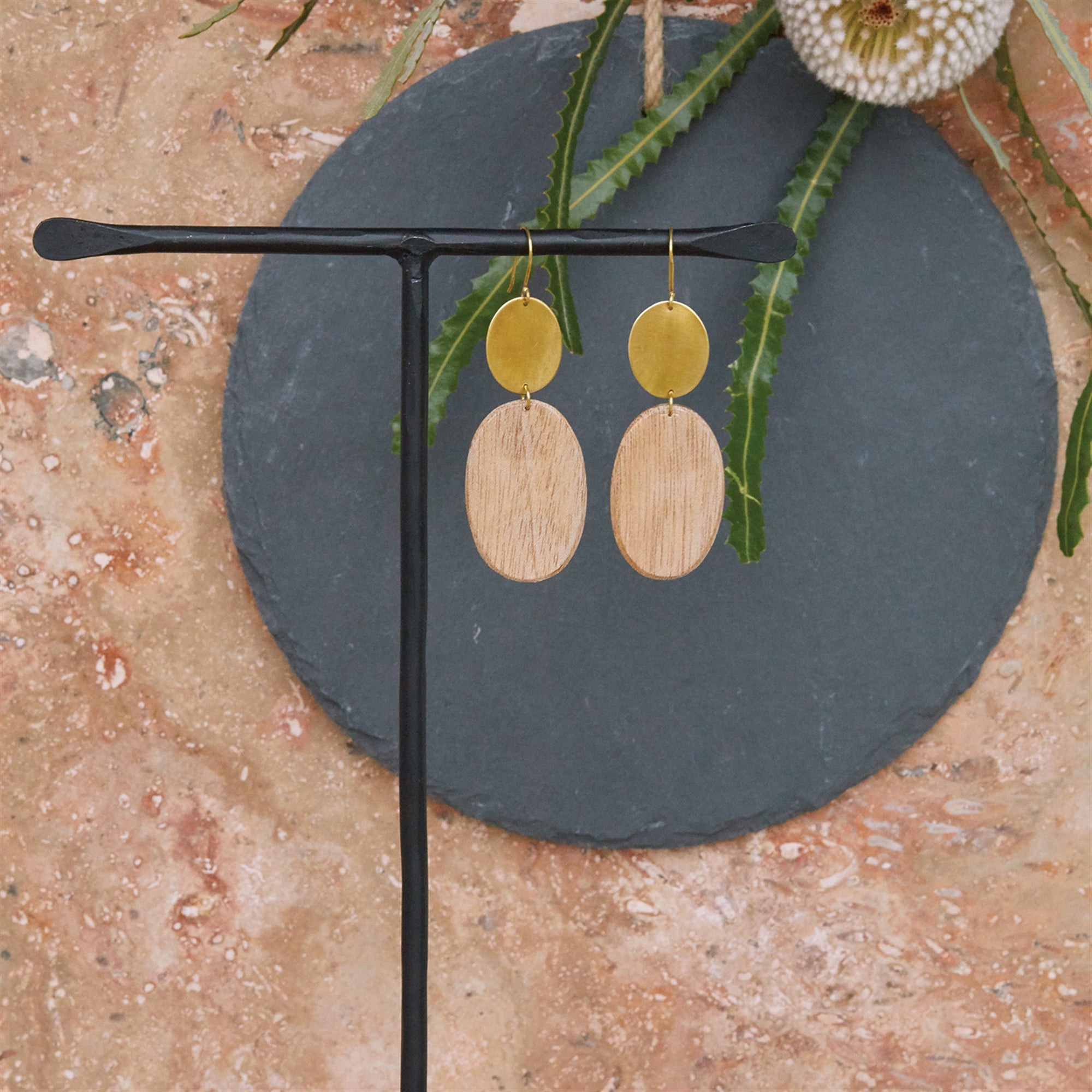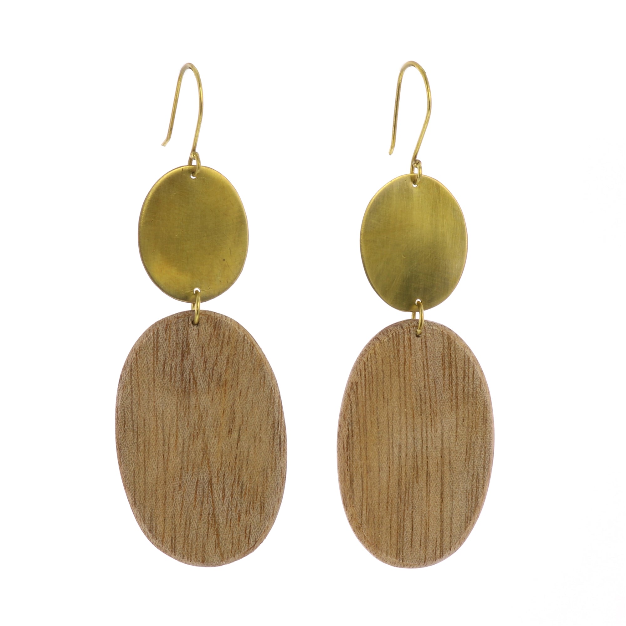 Leucadia Earrings, Brass & Wood - Ovals - Light Wood