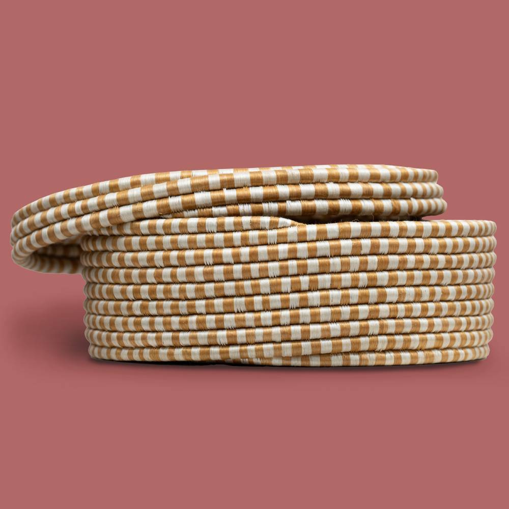 The Lidded Storage Boxes are multifunctional pieces that can be used for both storage and decor. While not in use, this duo nestles inside each other for space-saving storage. Our baskets are handcrafted in Rwanda with a time-honored weaving technique passed down from generations of artisans.
