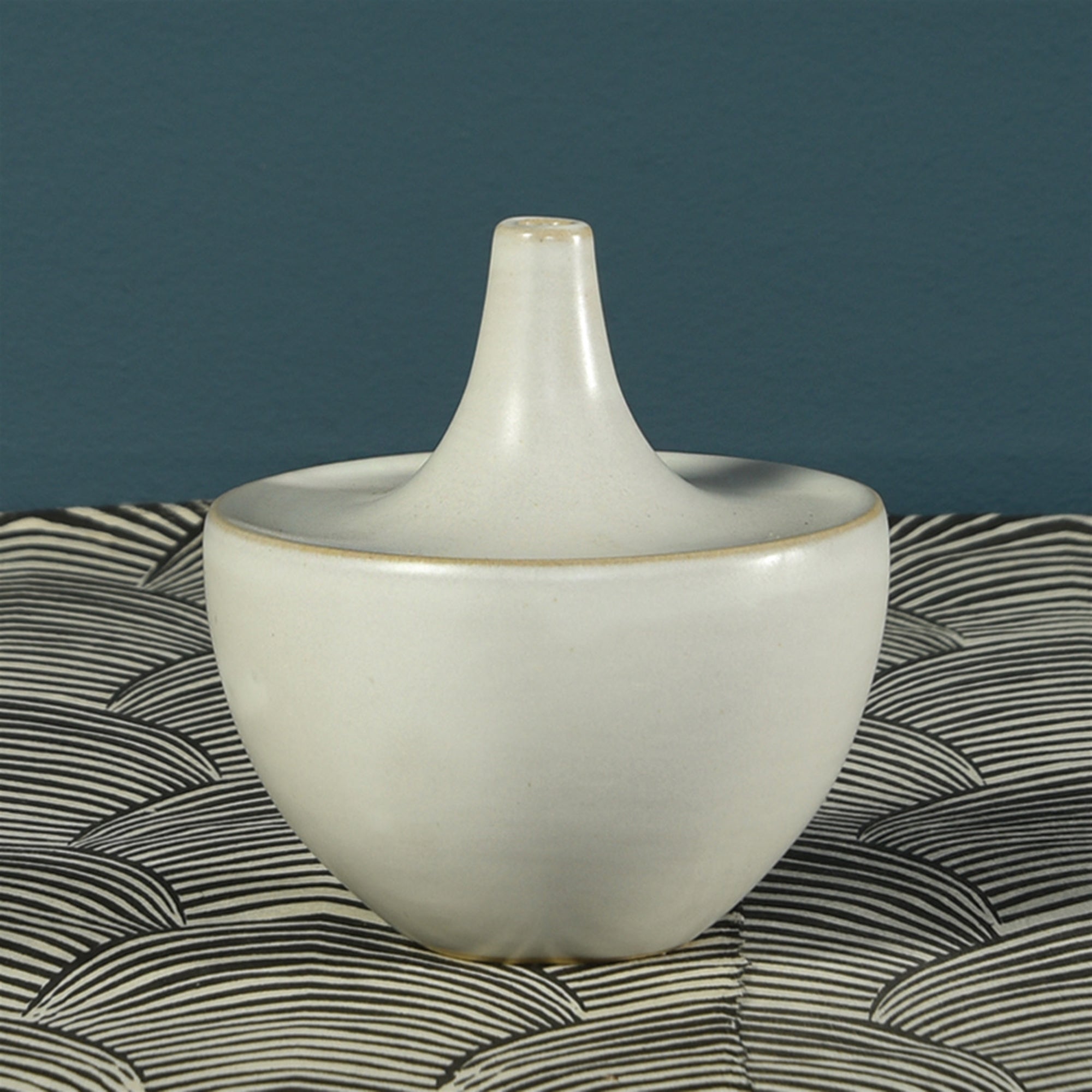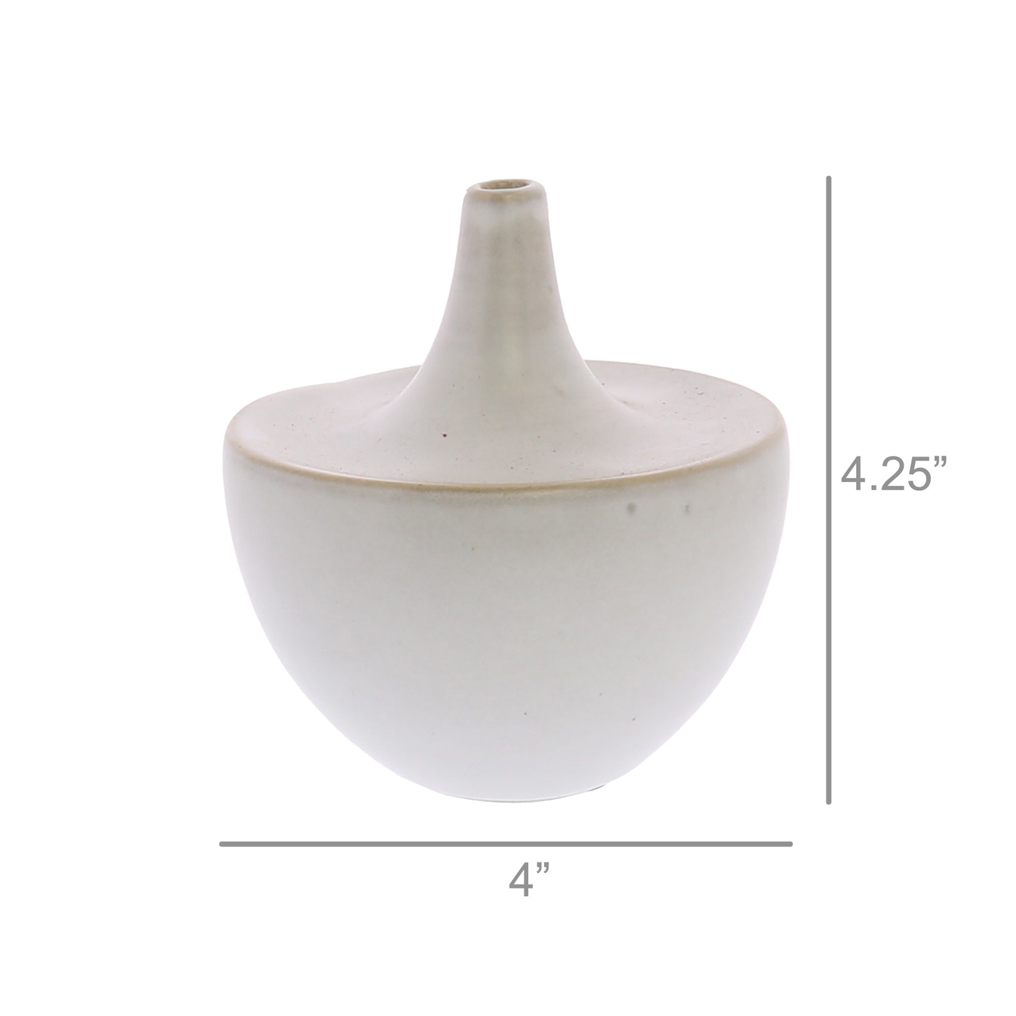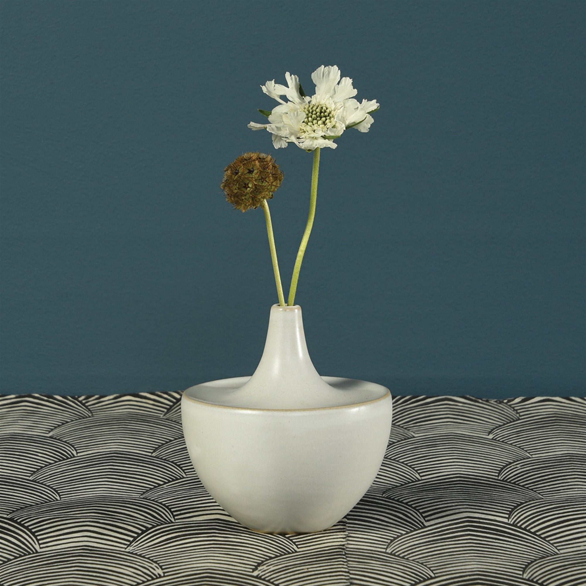 The soft white ceramic of our Small Lief Ceramic Vase has a hand-finished quality that is complemented by the simplest of floral arrangements. Vase is available in 3 sizes. opening .5"
