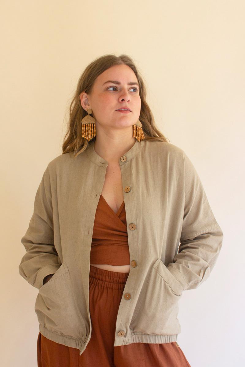 Light Buttondown Bomber Jacket With Front Pockets Oatmeal