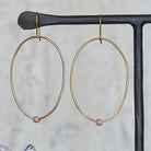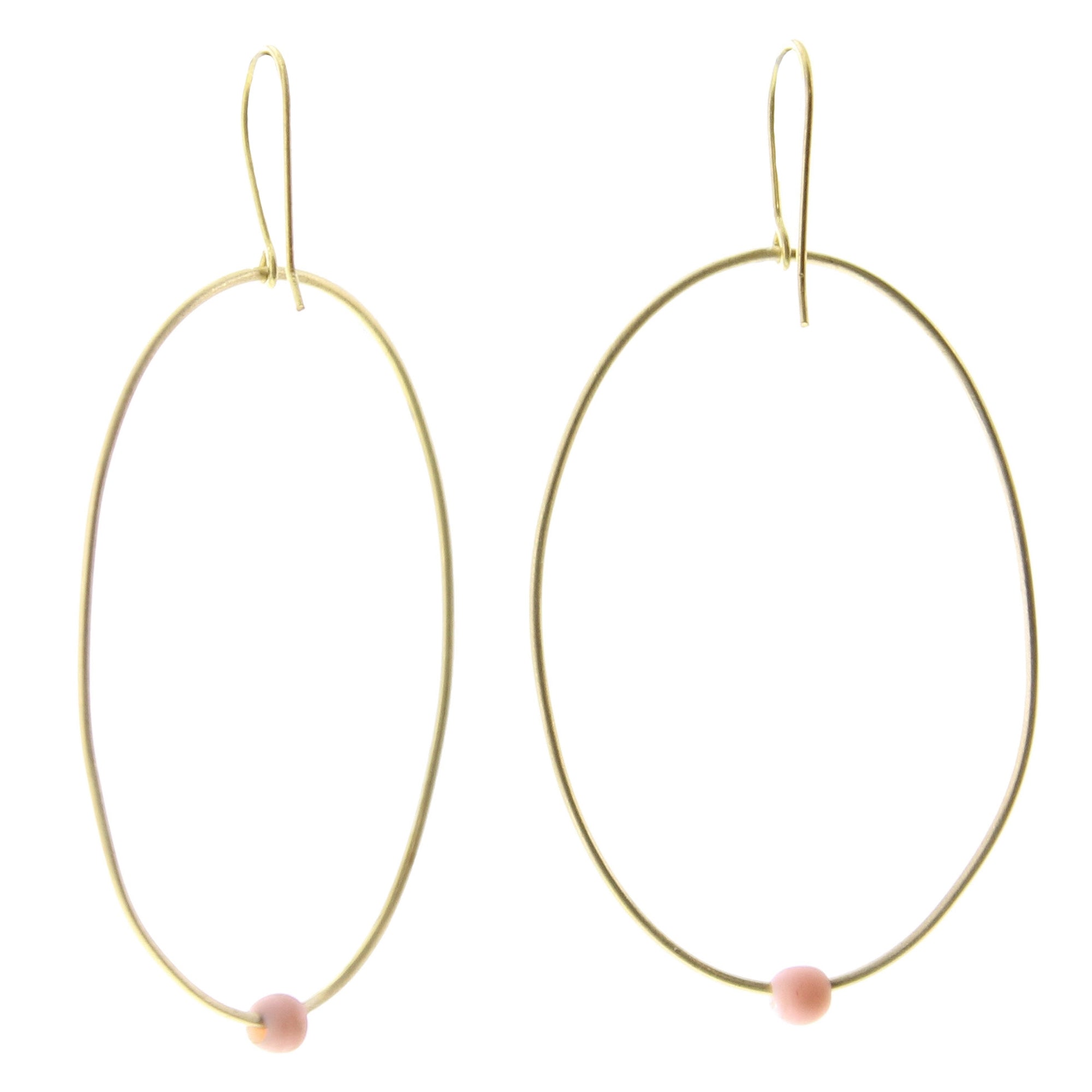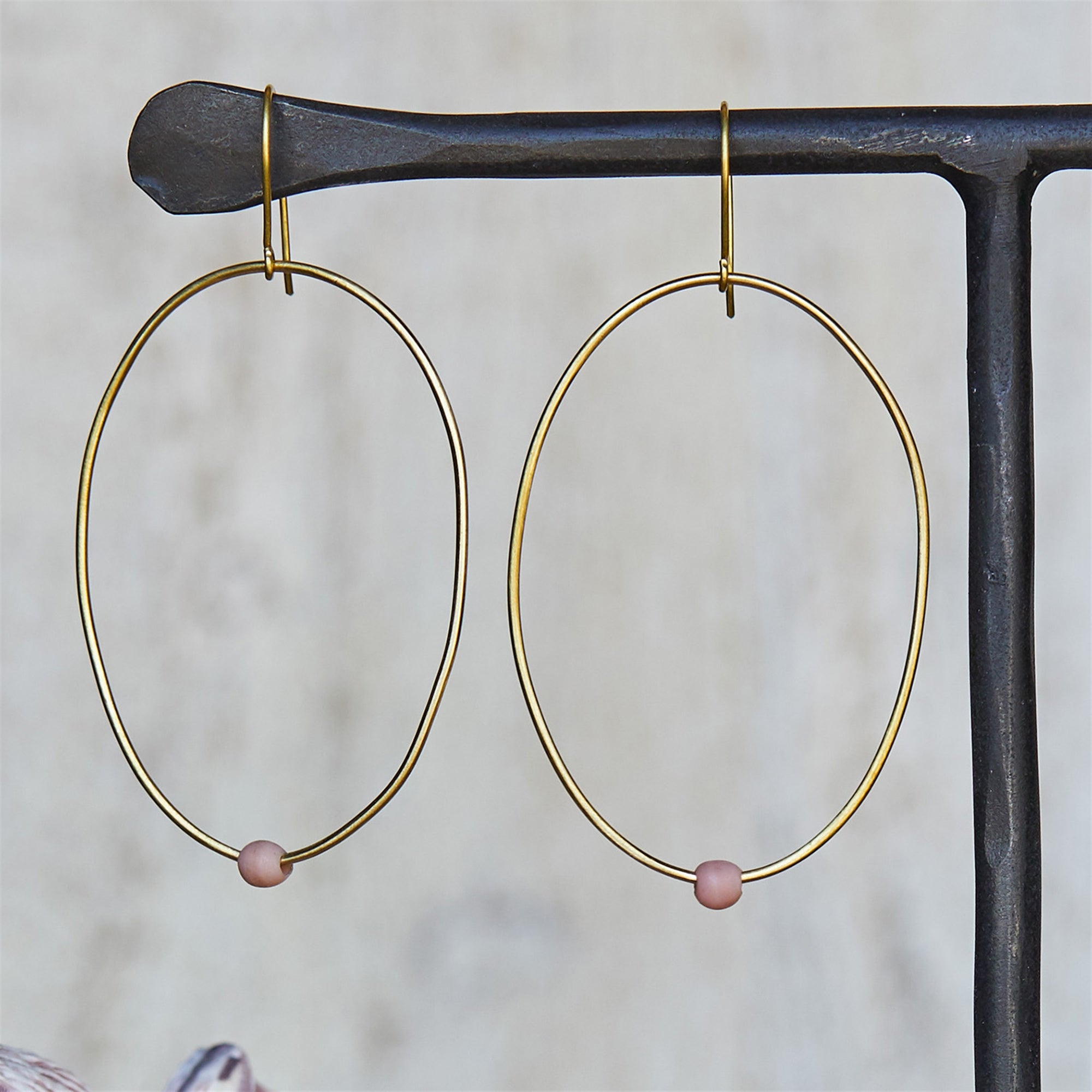 Organically shaped oval brass loops set the stage for a delicate pop of color in sea drenched tones with a singular glass bead. 1.5"x3"