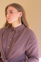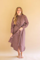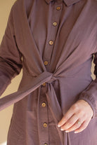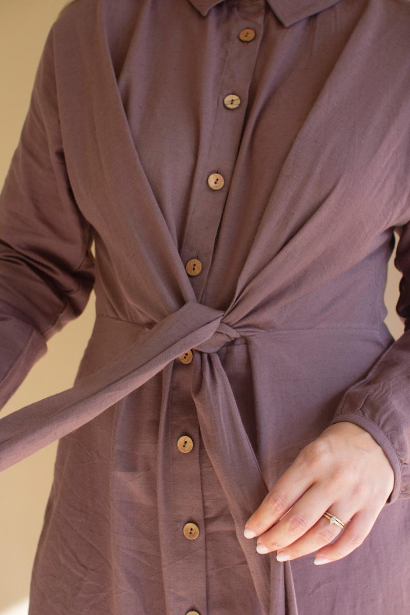 Long Sleeve Buttondown Dress W Front Tie Detail Mulberry