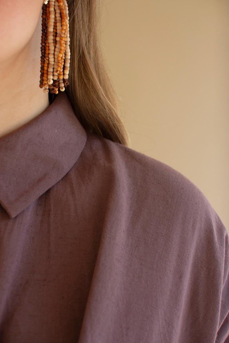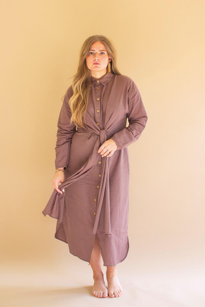 Long Sleeve Buttondown Dress W Front Tie Detail Mulberry (Pack Of 3)