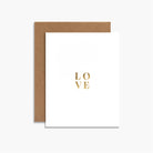 Greeting card crafted from cotton paper features a gold foil sentiment in a bold, stylish typography. Inside Left blank. Kraft colored recycled paper envelope included.