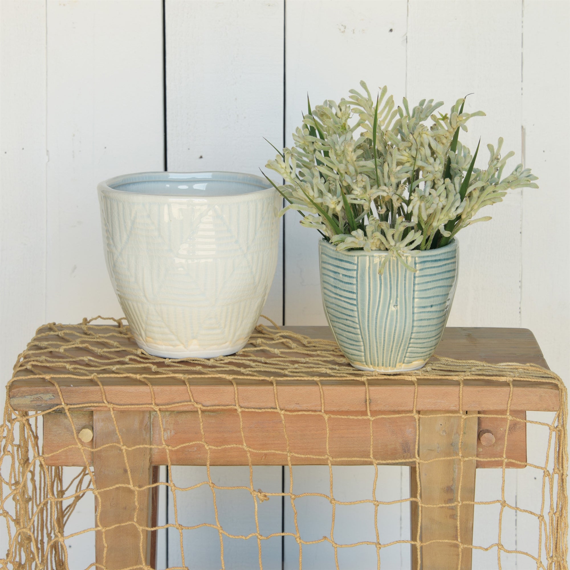 Soft in color palate and equally easy in texture the Lucie Ceramic Cachepots are the perfect size for seaside inspired drop-in plants.