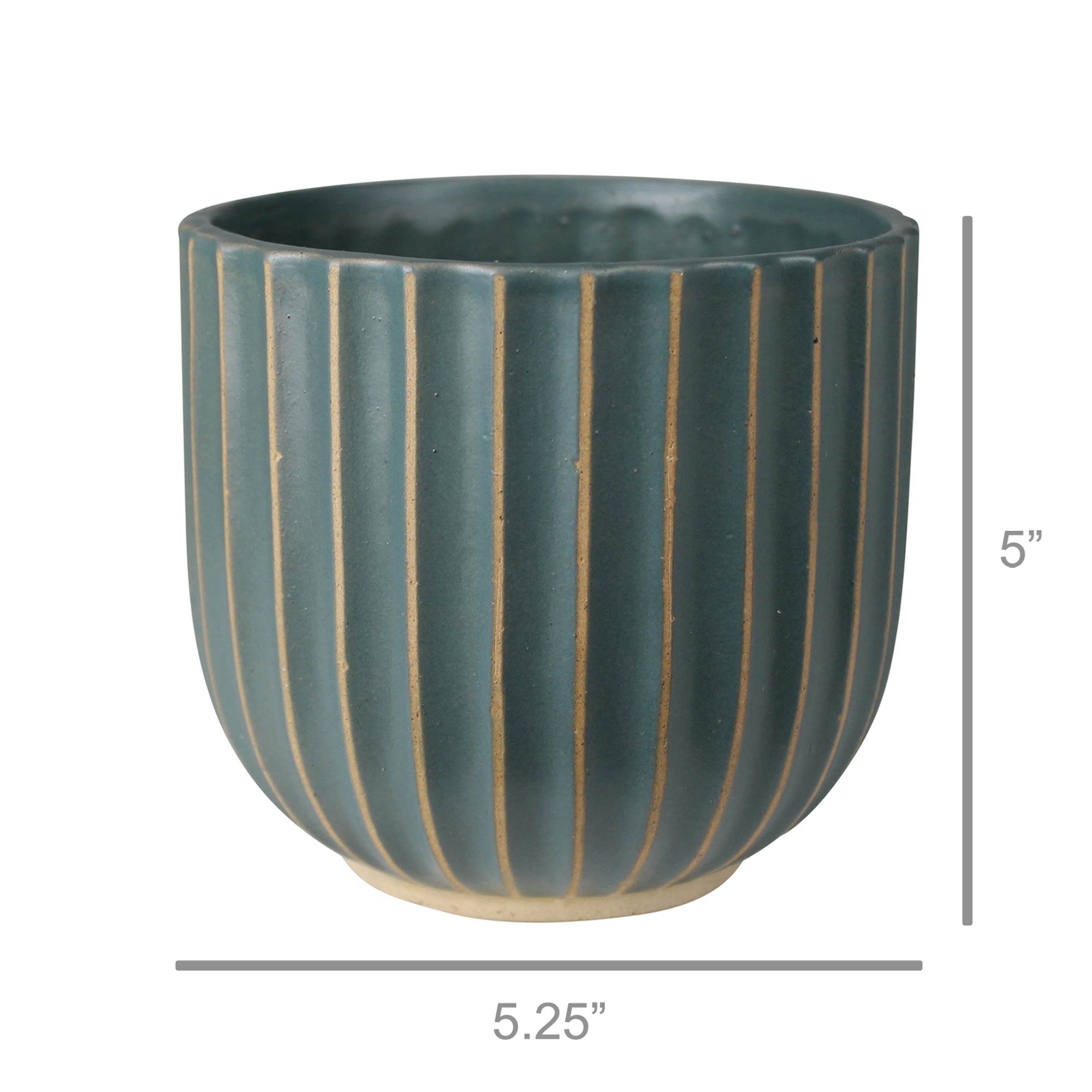 Unique glazes applied to the texture of natural earthenware shapes create simple yet elegant vessels for 5” drop in plant pots.