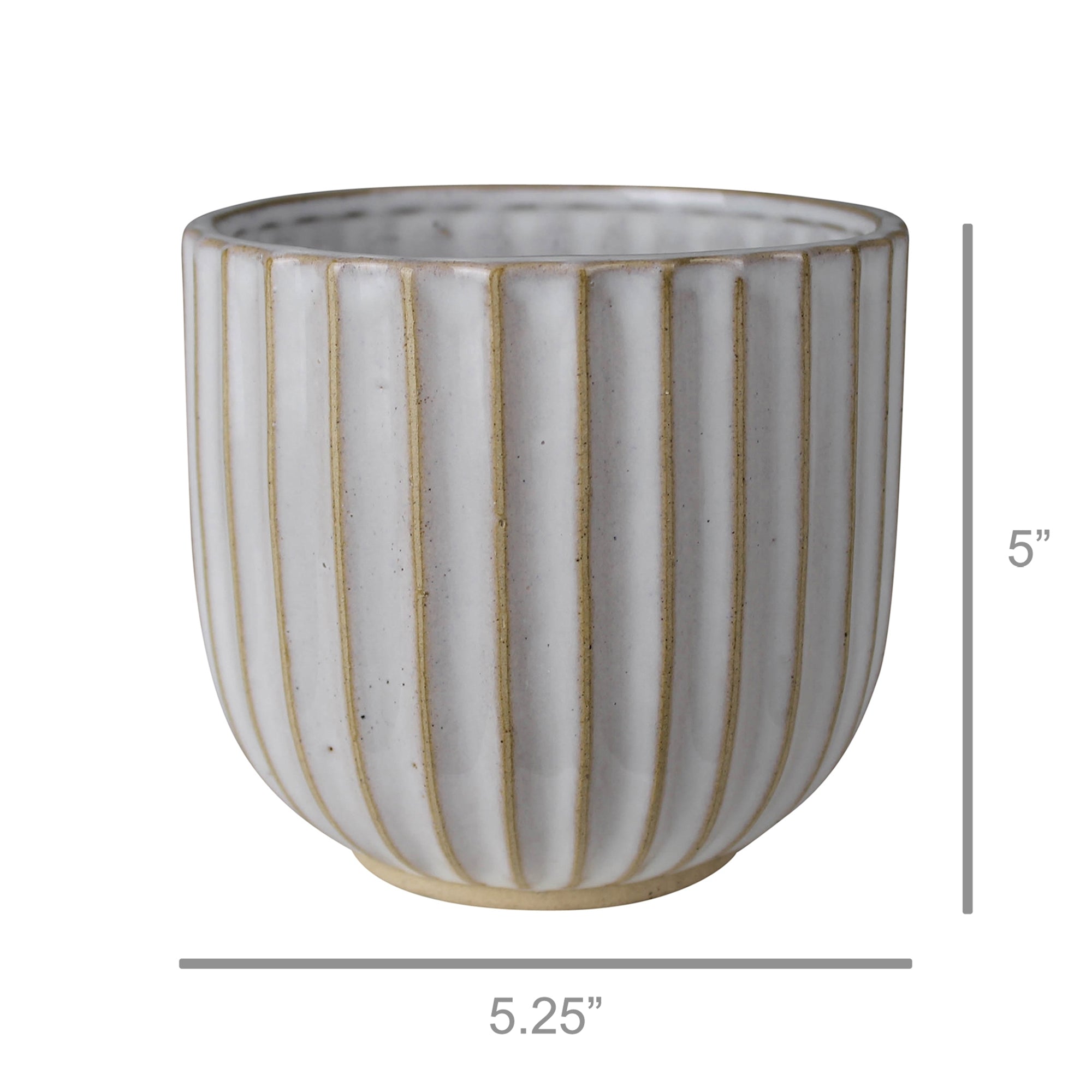 Unique glazes applied to the texture of natural earthenware shapes create simple yet elegant vessels for 5” drop in plant pots.