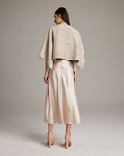 This hand-loomed crop bolero features heathered Italian yarn and a soft, lightweight summer texture. Perfect over an evening dress or with jeans for versatile layering.