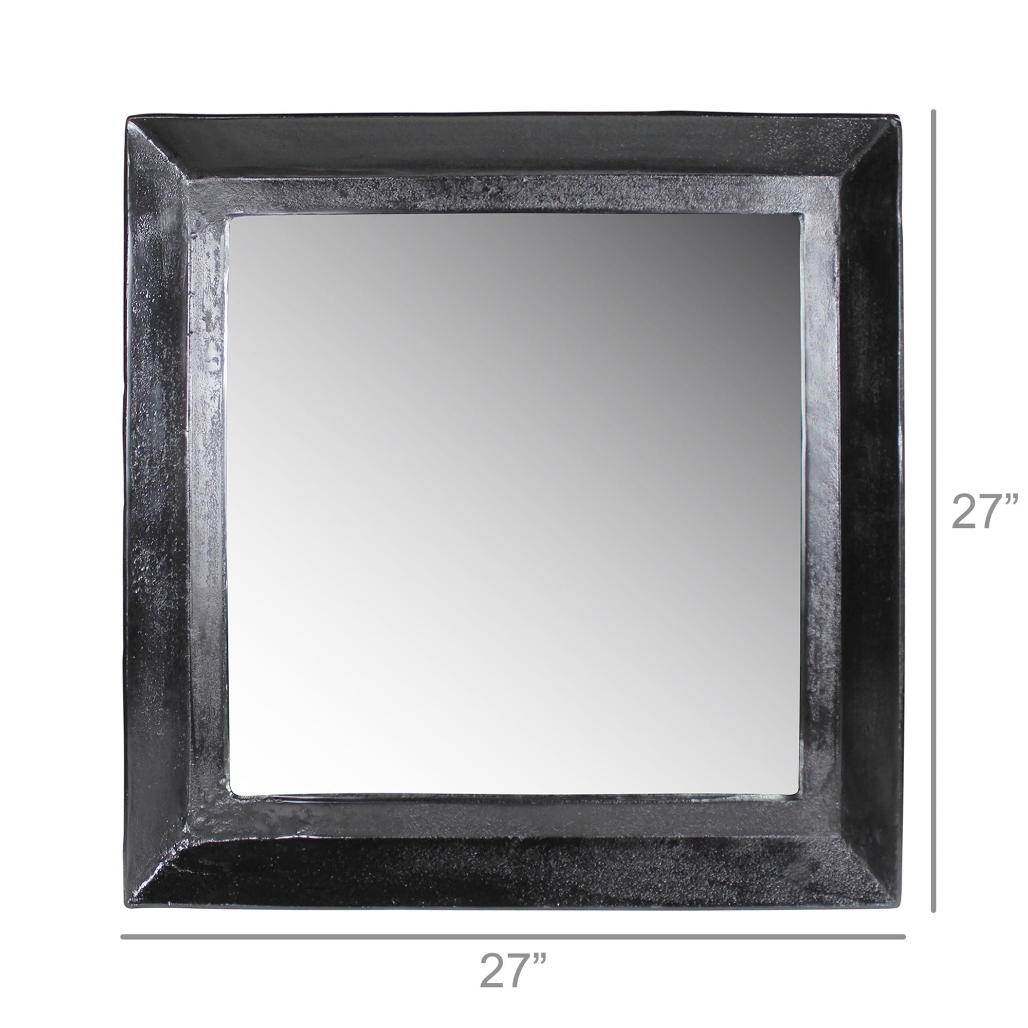 A conventional square mirror is given a spark of intrigue with its wide, inset frame. Cast of aluminum, plated in bronze.