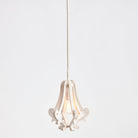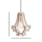 A carved design and simple silhouette makes this a modern take on a traditional scroll design. The jute wrapped chain gives it a decidedly more casual feel. A classic look for kitchen or entryway, or even in the bedroom.
