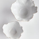 With crimped edges and natural form, this pair of decorative bowls is a real statement-making centerpiece. The hand-brushed gold tipped edges are electroplated for shine and durability. Place atop a few art books on coffee table, or on a side table for a stunning look.
