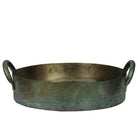 With high sides and sturdy handles this galvanized tray with a green patina finish lends itself perfectly to carrying beverages to a thirsty crowd.