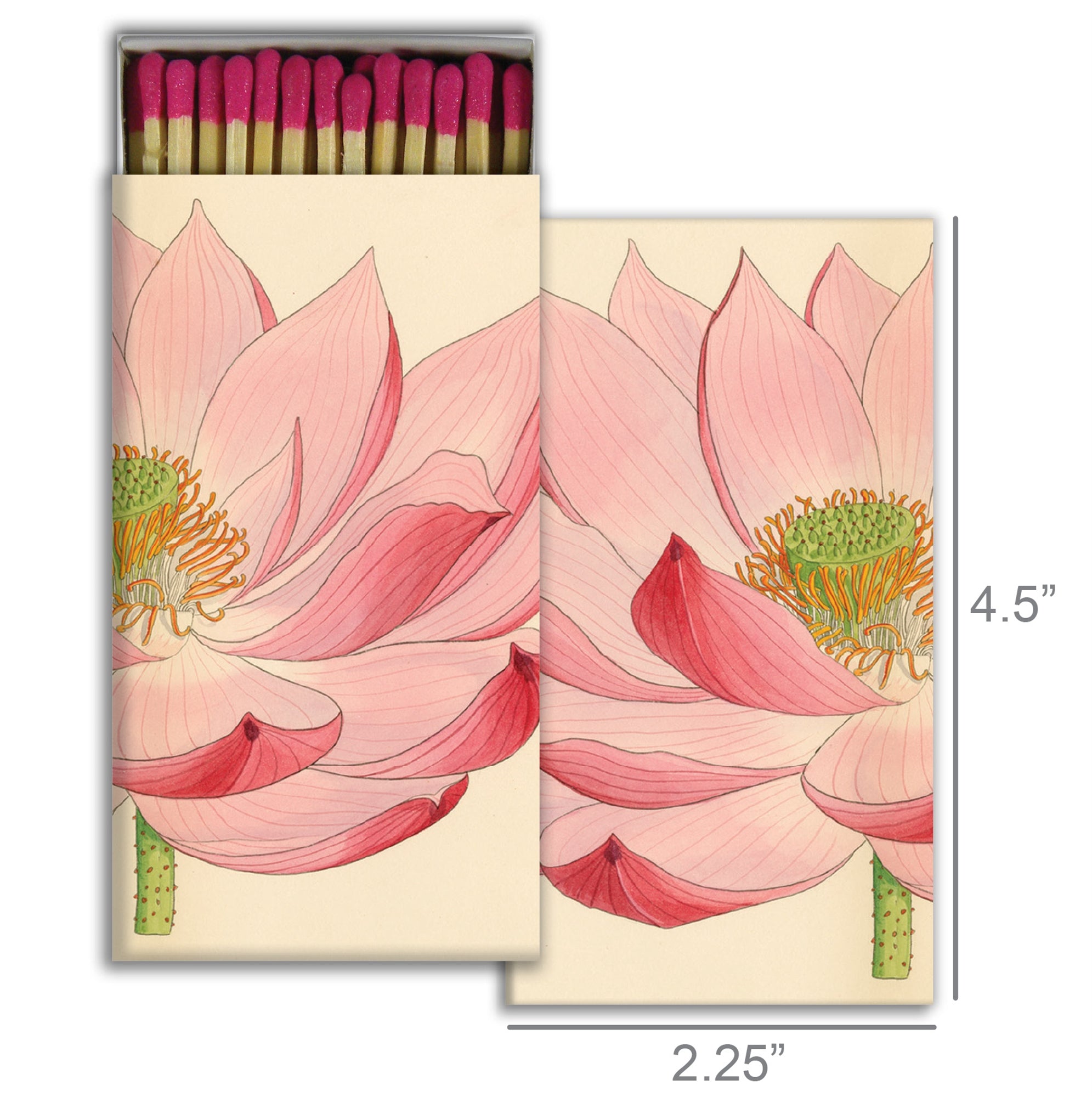 A quintessential article of daily use, our Match Boxes flaunt unique designs with coordinating match tips. Sweet as a hostess gift, a perfect pairing to a candle and always an eye catching pop of graphic decor. Safety matches, 50 sticks per box.