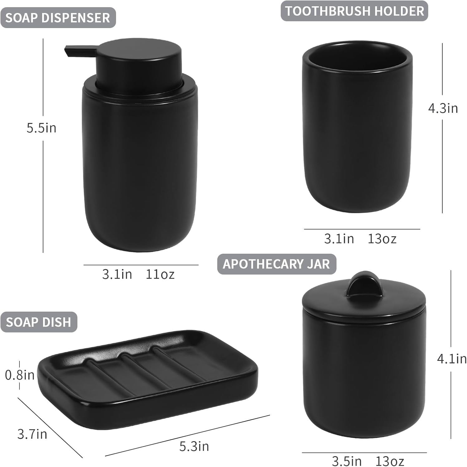 Matte Black 4-Piece Foaming Bathroom Set Sustainable Ceramic